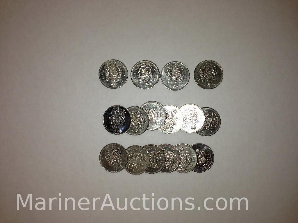 Lot of 16 Canadian Half Dollars Mixed Dates