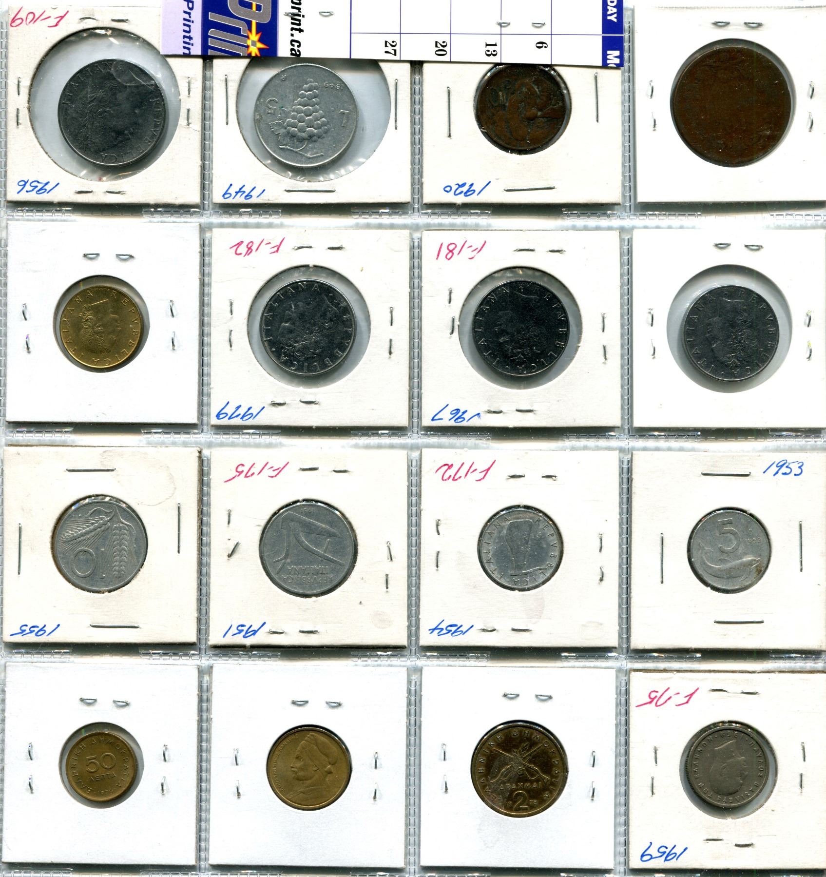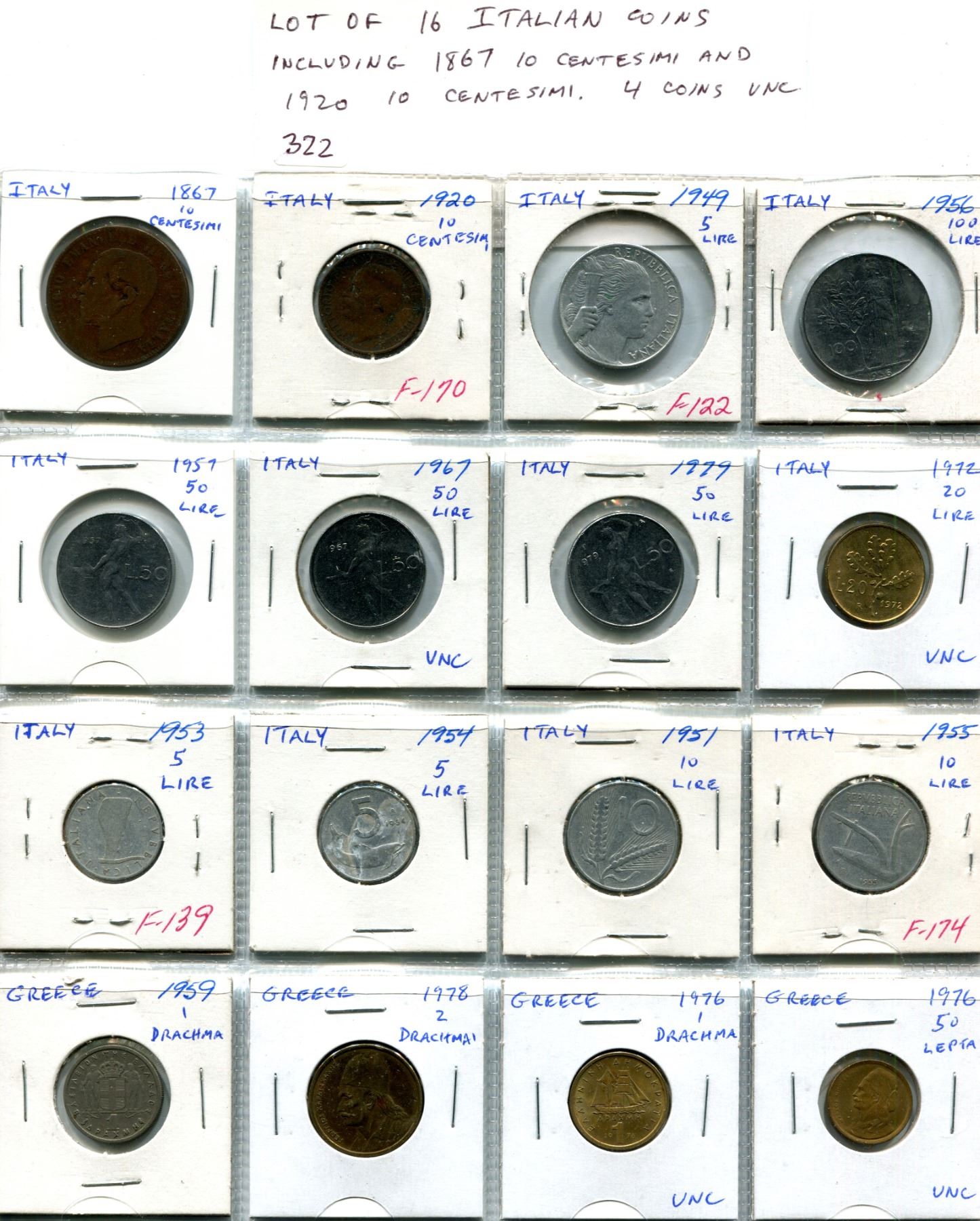 Lot of 16 Italian coins including 1867 10 Centesimi and 1920 1 Centesimi. 4 coins are Unc. A nice selection.