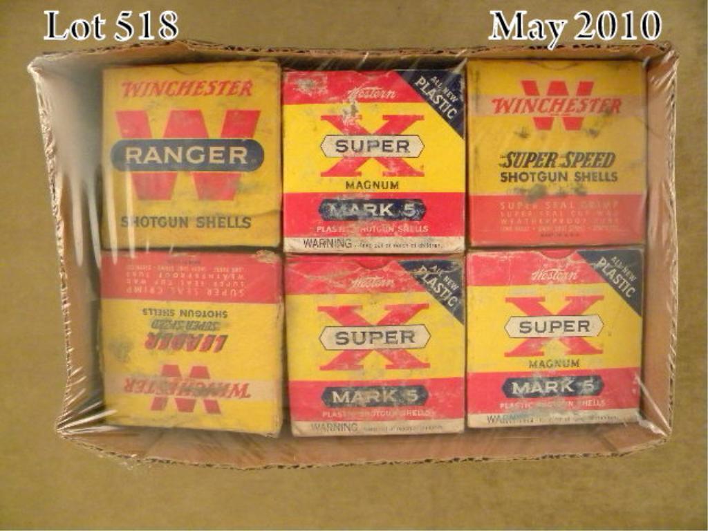 Lot of 16 boxes of 12 gauge shotgun shells by Winchester and Western, various vintages, many full boxes, some partial. Est.: $75-$125.