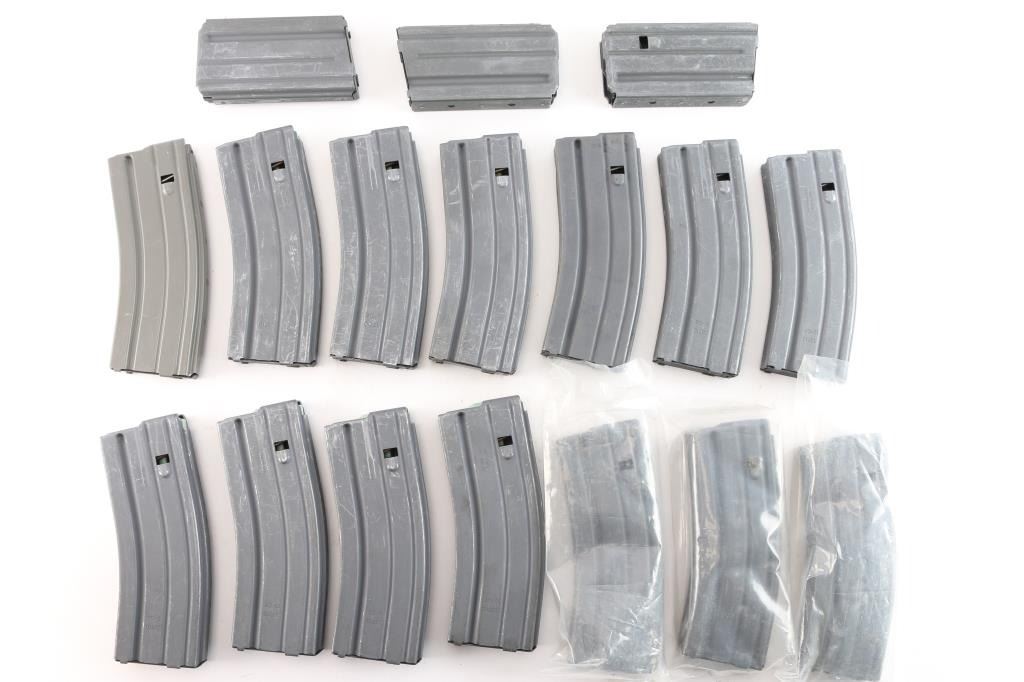 Includes fourteen 30 round magazines and three 20 round magazines.