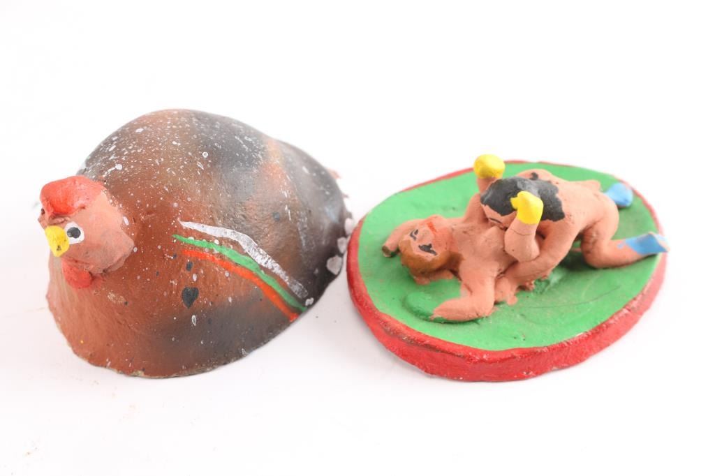 (7) Miniature pieces of pottery, measuring 1 3/4".