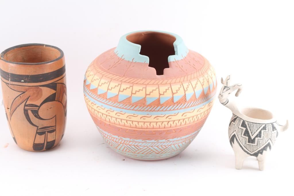 (10) Miscellaneous pots and ashtrays, the tallest measuring from 6 1/2".