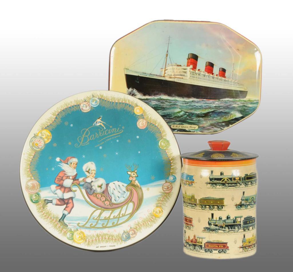 Includes tin containers for Droste's Cocoa, Davis and Calumet Baking Powders, and Velvet tobacco plus a R&S bulb kit and a Children's Crusade bank. All in overall nice condition with light wear. Tobacciana Condition (8.0 - 8.8, Excellent). Size Largest: 7" T.