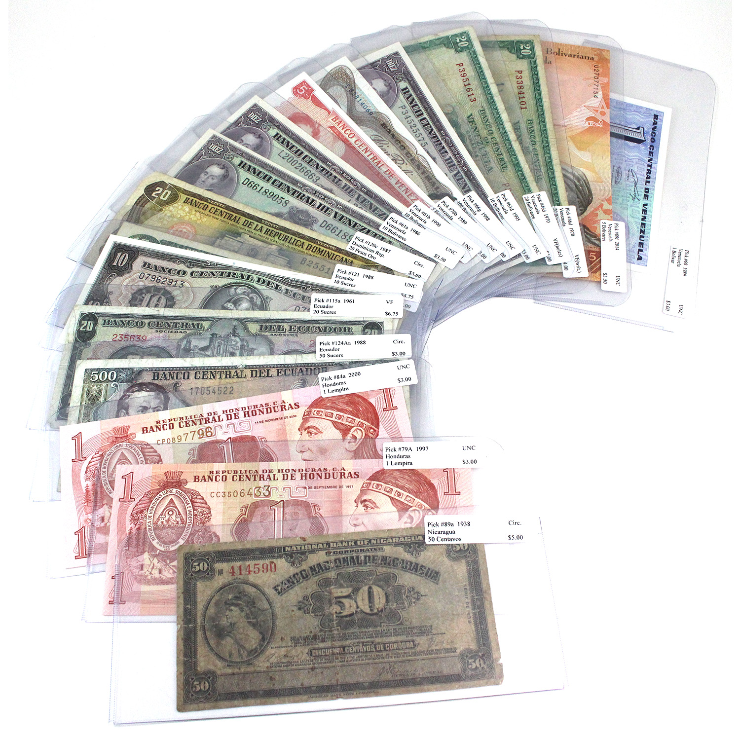 You will receive notes from Venezuela, Dominican Republic, Ecuador, Honduras & Nicaragua. Please check image for variety!