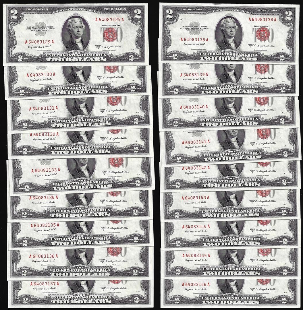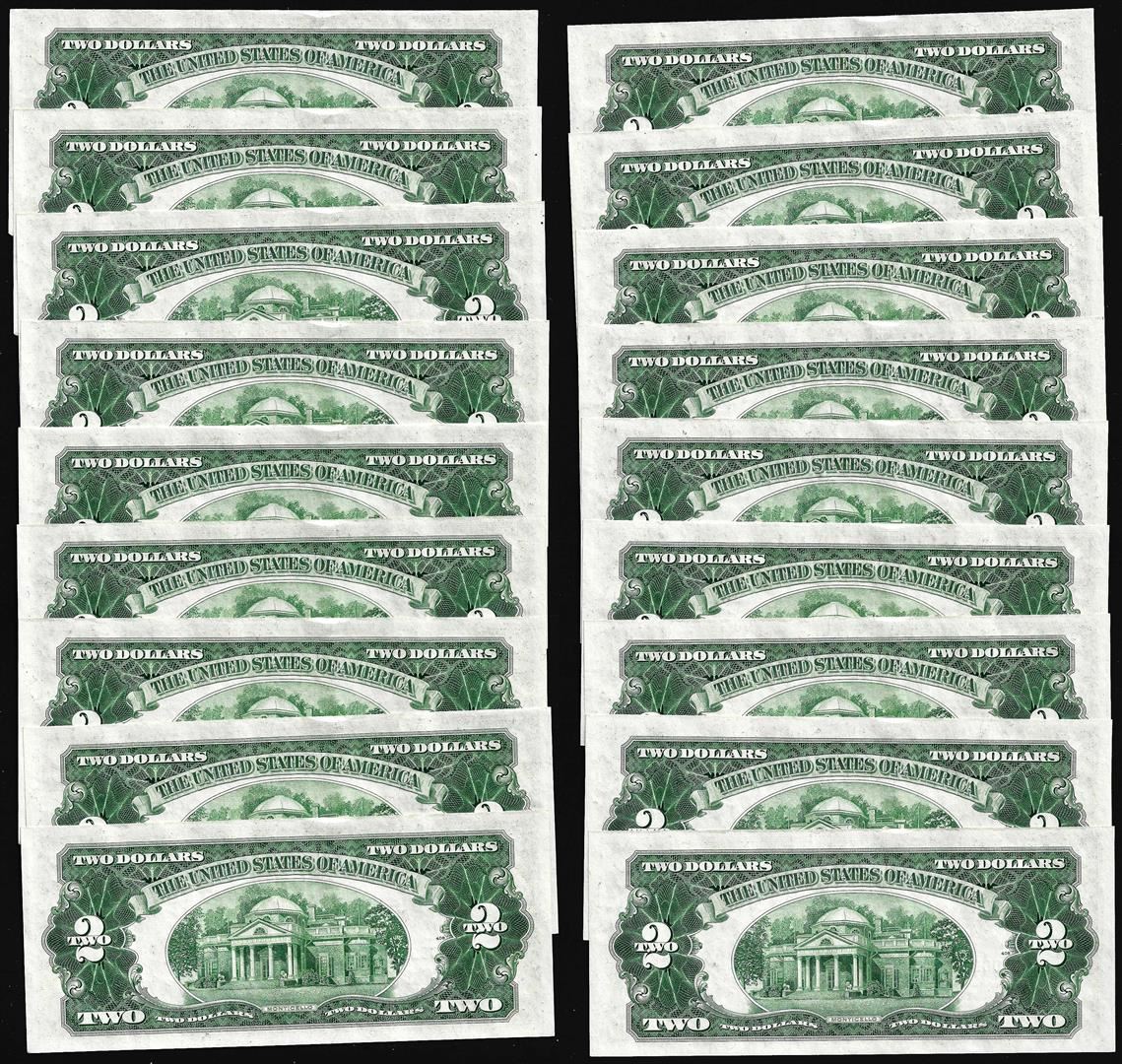One Lot of (18) Consecutive 1953 $2 Legal Tender Notes.