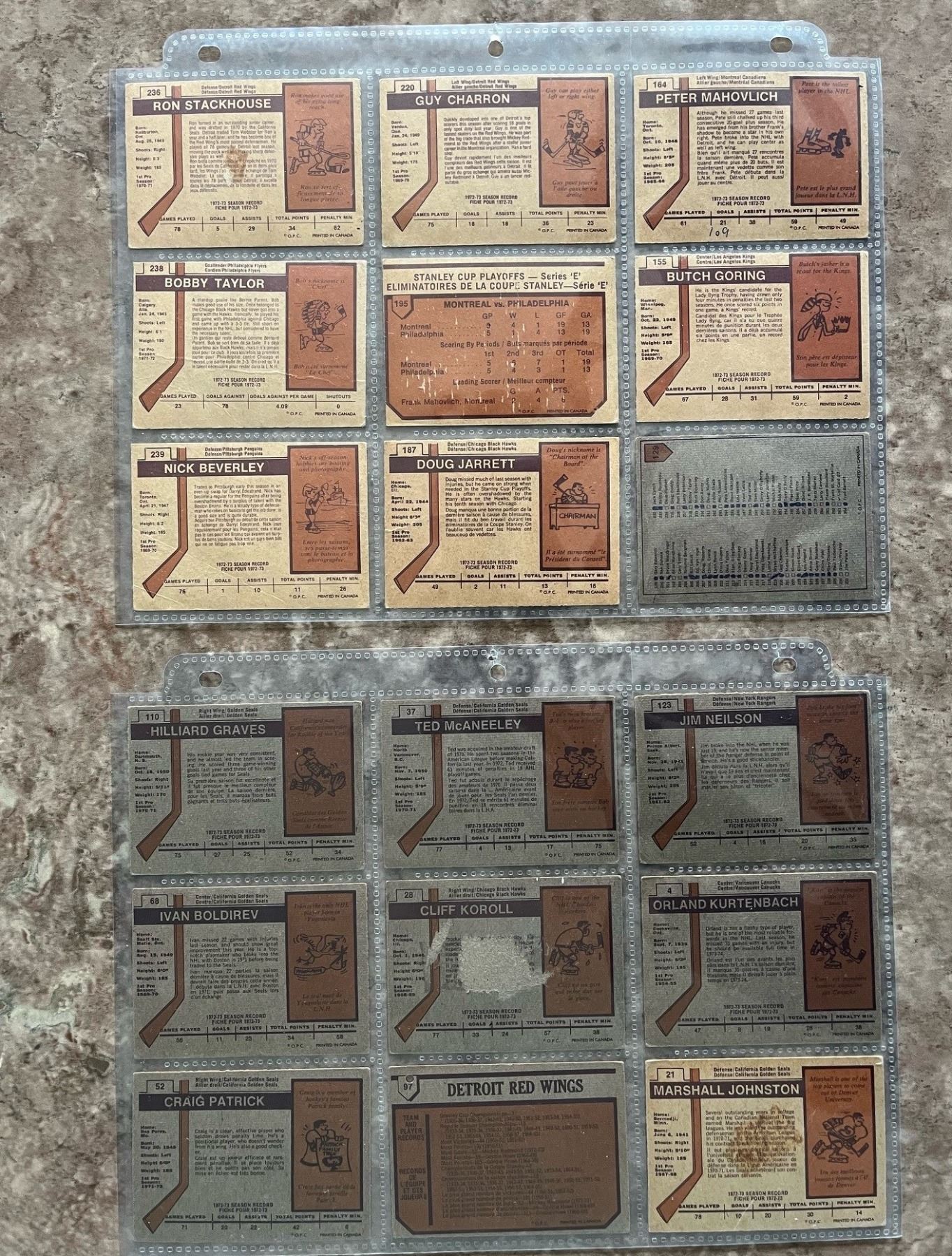 Lot of 18 O-Pee-Chee (OPC) cards from 1973-74. Marked checklist. Orland Kurtenbach. Jim Nielson. Marshall Johnston and other Golden Seals.
