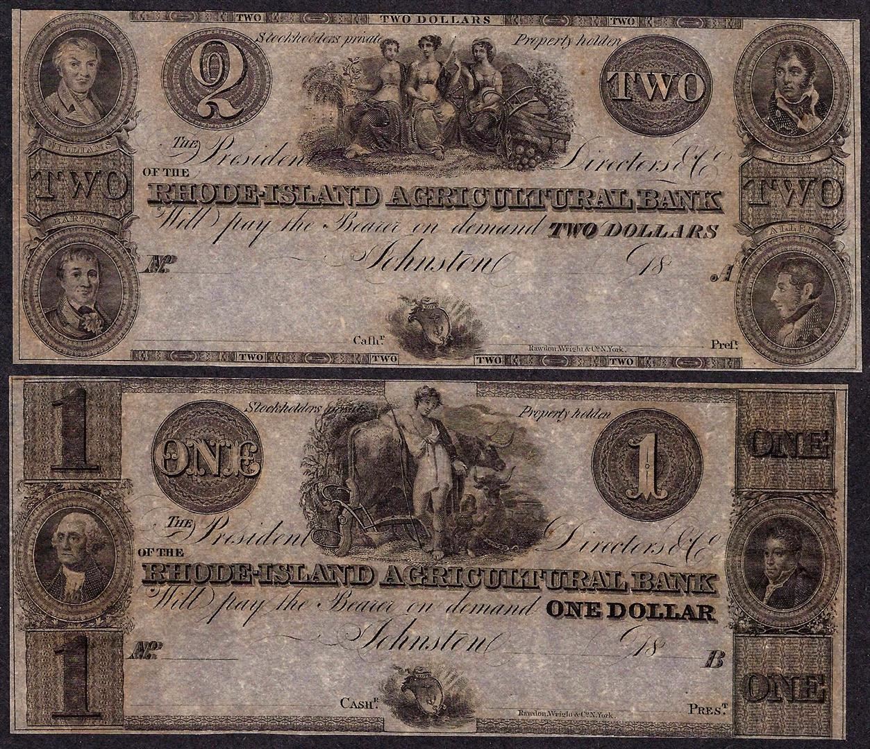 One Lot of 1800's $1/2 Rhode Island Agricultural Bank Obsolete Notes.