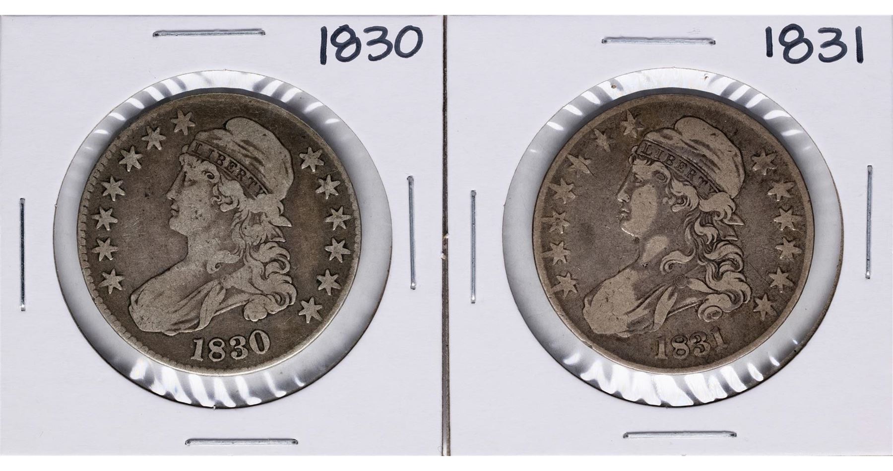 One Lot of 1830-1831 Capped Bust Half Dollar Coins.