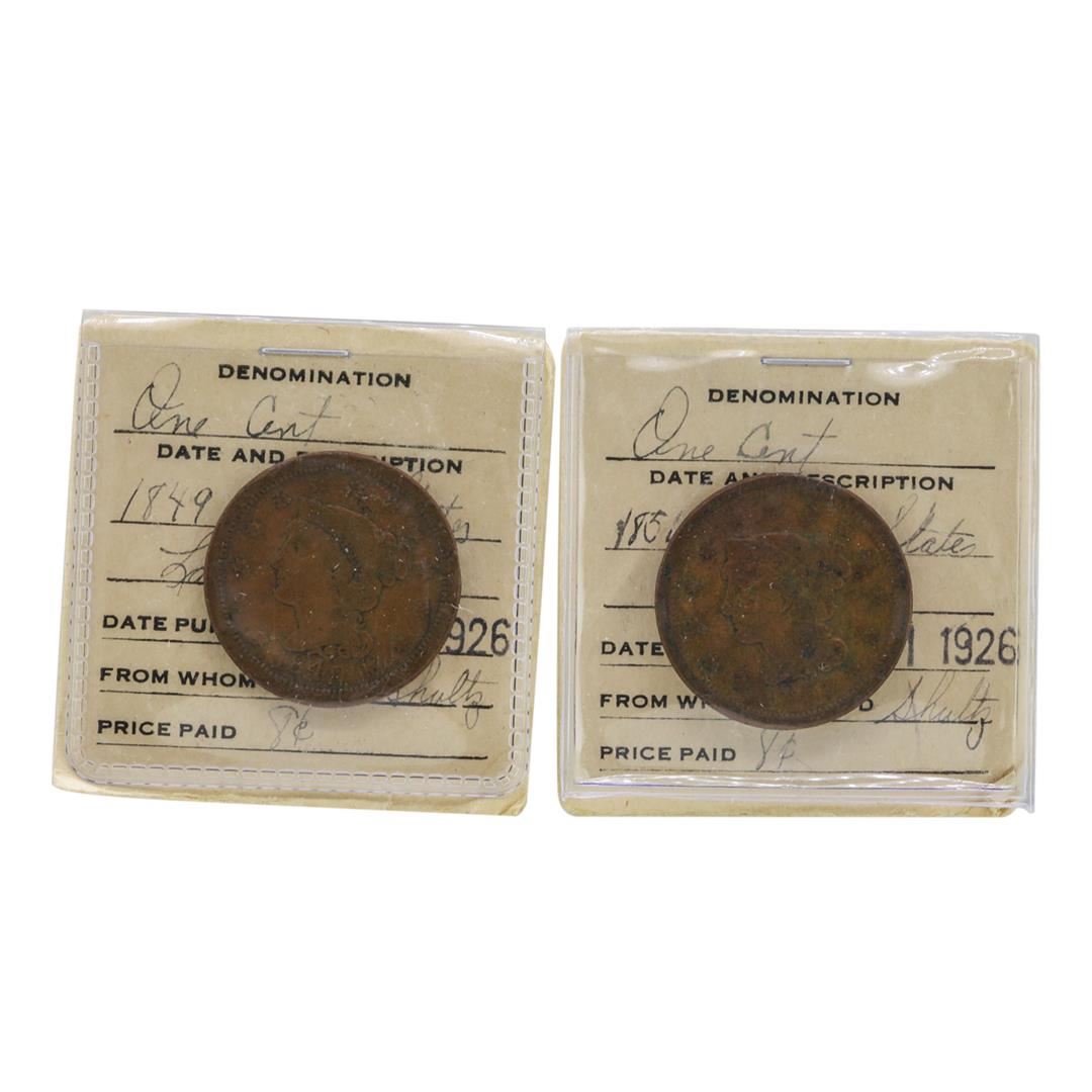 One Lot of 1849 & 1851 Large One Cent Coins in Old Flip.