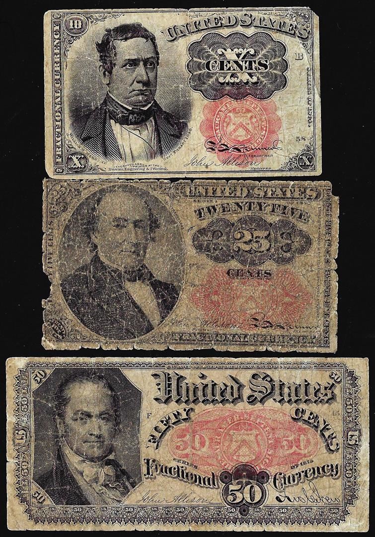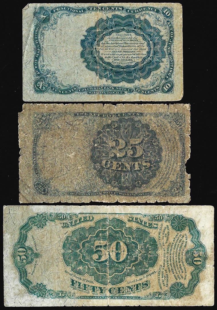 One Lot of 1863 Fifth Issue 10/25/50 Cent Fractional Currency Notes.