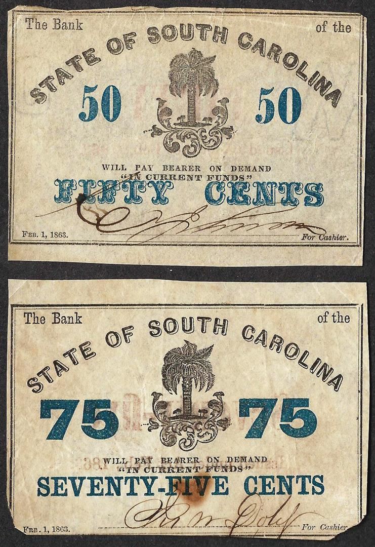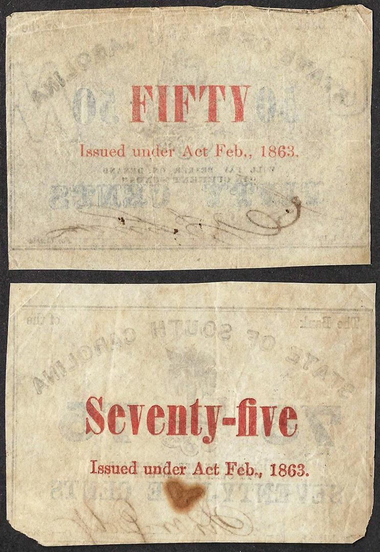 One Lot of 1863 Fifty & Seventy-Five Cent State of North Carolina Obsolete Notes.