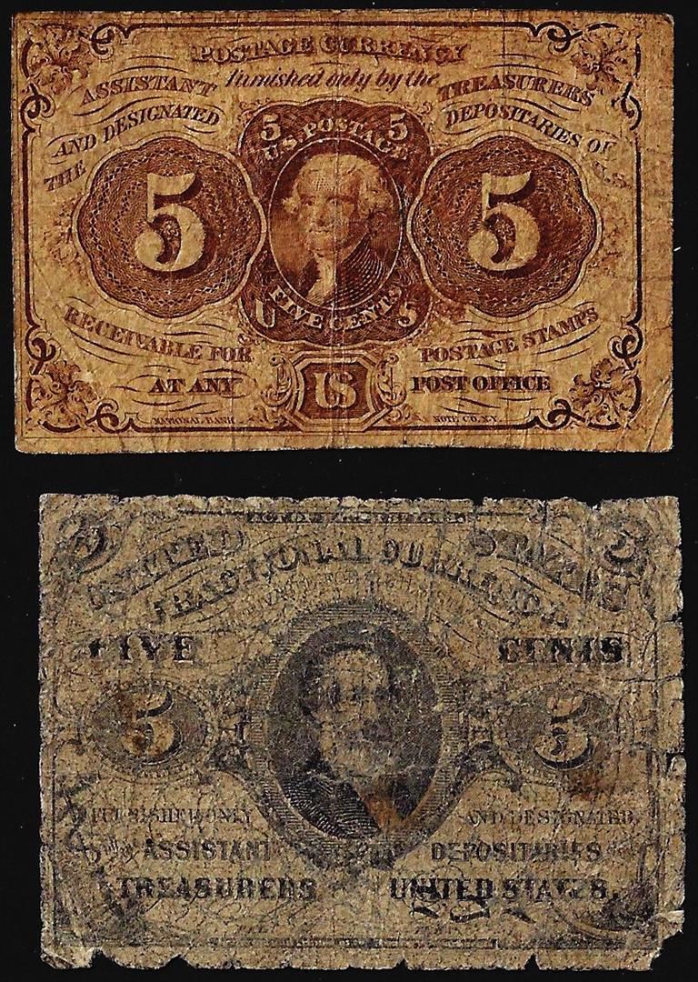 One Lot of 1863 Five Cents First and Third Issue Fractional Currency Notes.