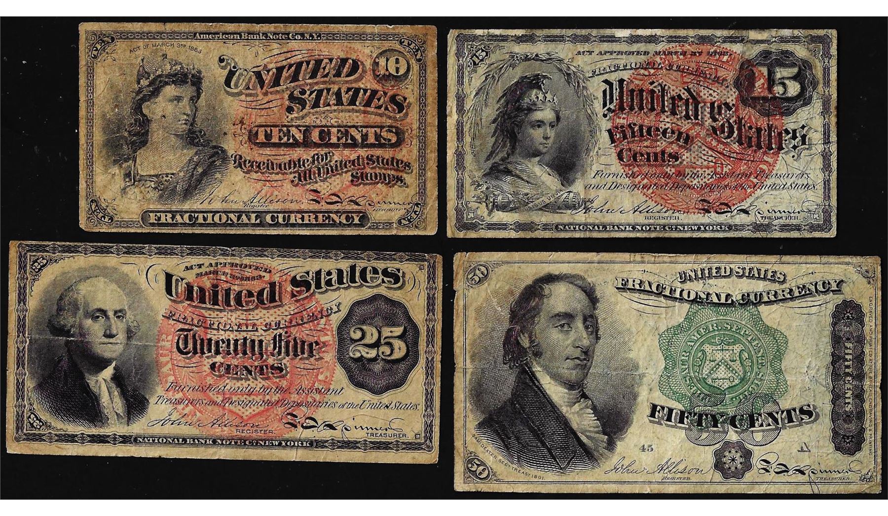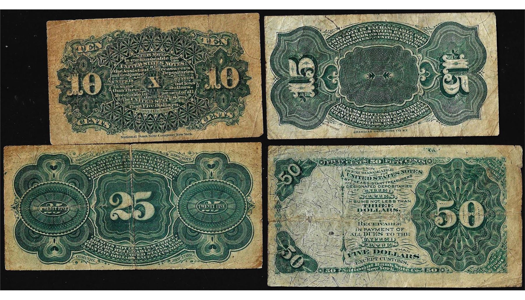 One Lot of 1863 Fourth Issue 10/15/25/50 Fractional Currency Notes.