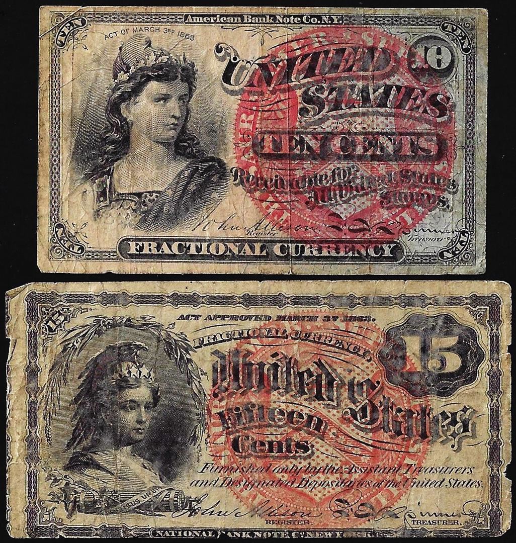 Lot of 1863 Fourth Issue 10 & 15 Cents Fractional Currency Notes