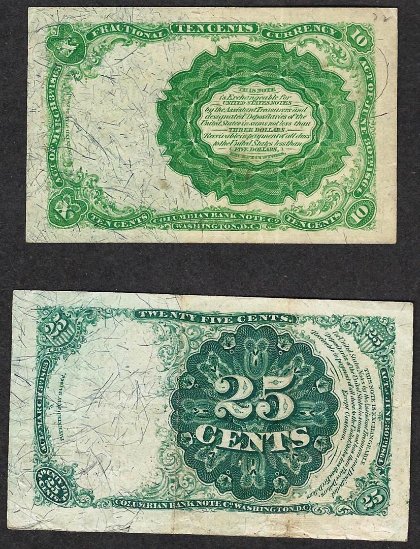 Lot of 1863 Ten Cent & Twenty Five Cent 4th Issue Fractional Notes