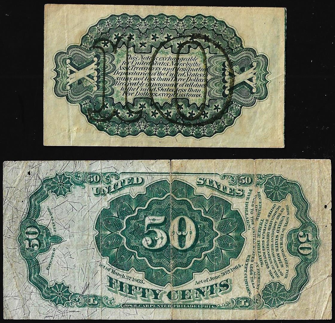 Lot of 1863 Ten Cents Second Issue & 1875 Fifty Cents Fifth Issue Fractional Notes