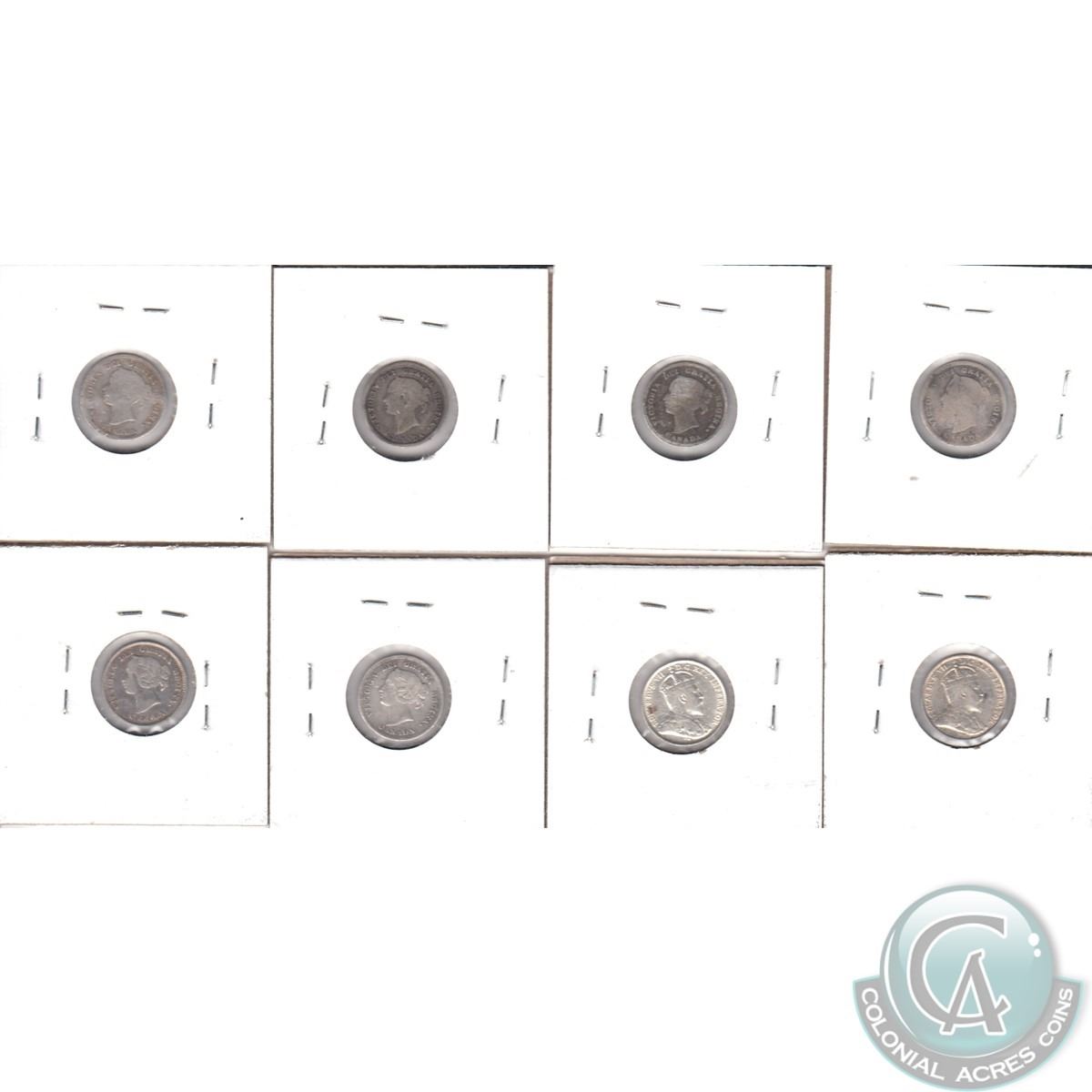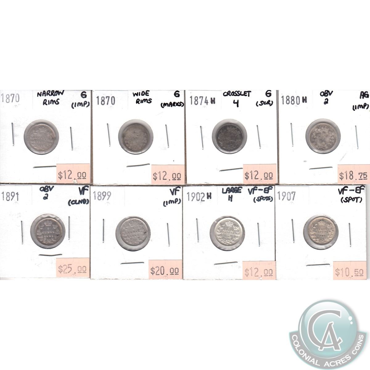 Lot of 1870-1907 Canada 5-cent AG to VF-EF (coins have various impairments). 8pcs