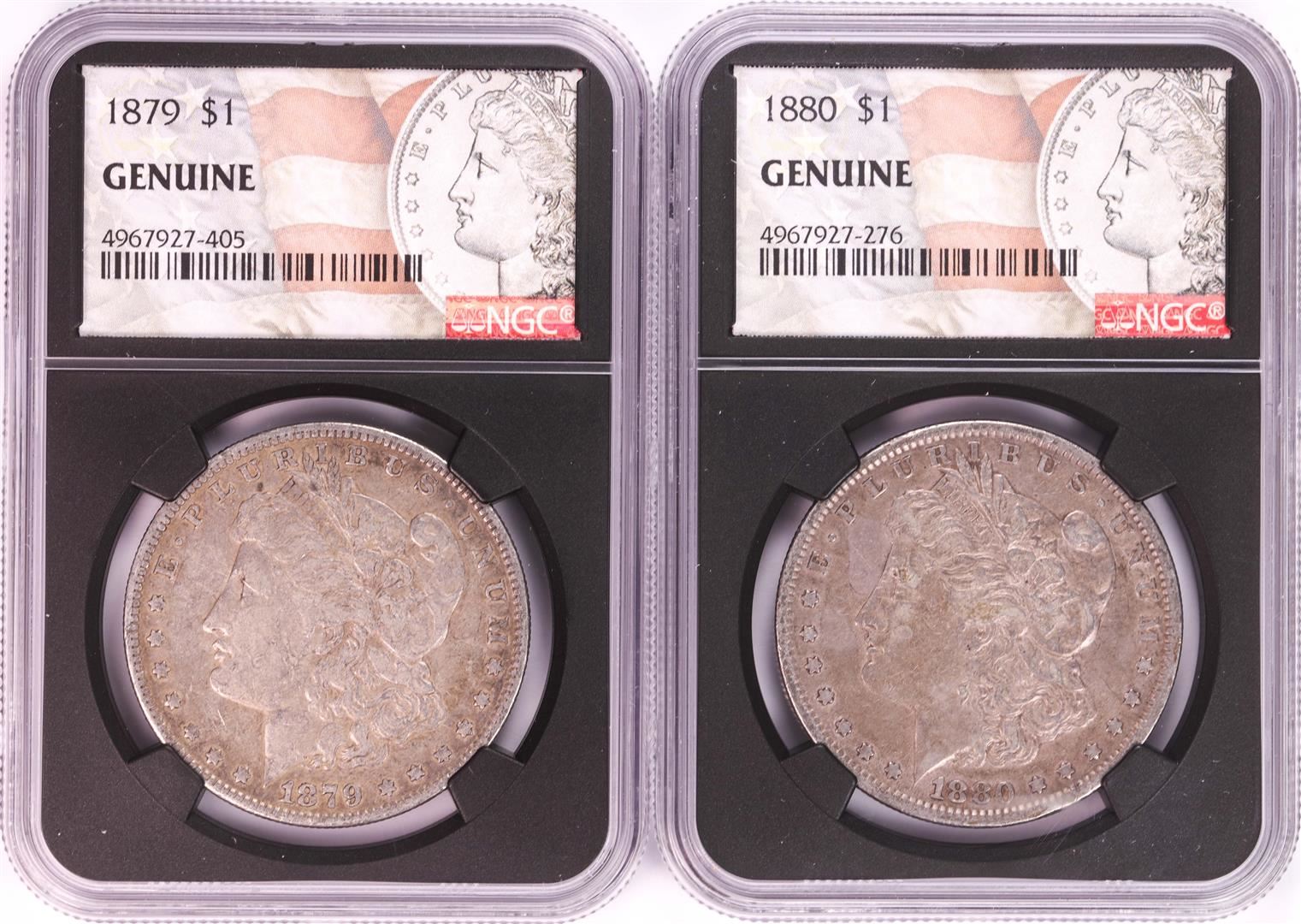 One Lot of 1879-1880 $1 Morgan Silver Dollar Coins NGC Genuine. NGC Certified.
