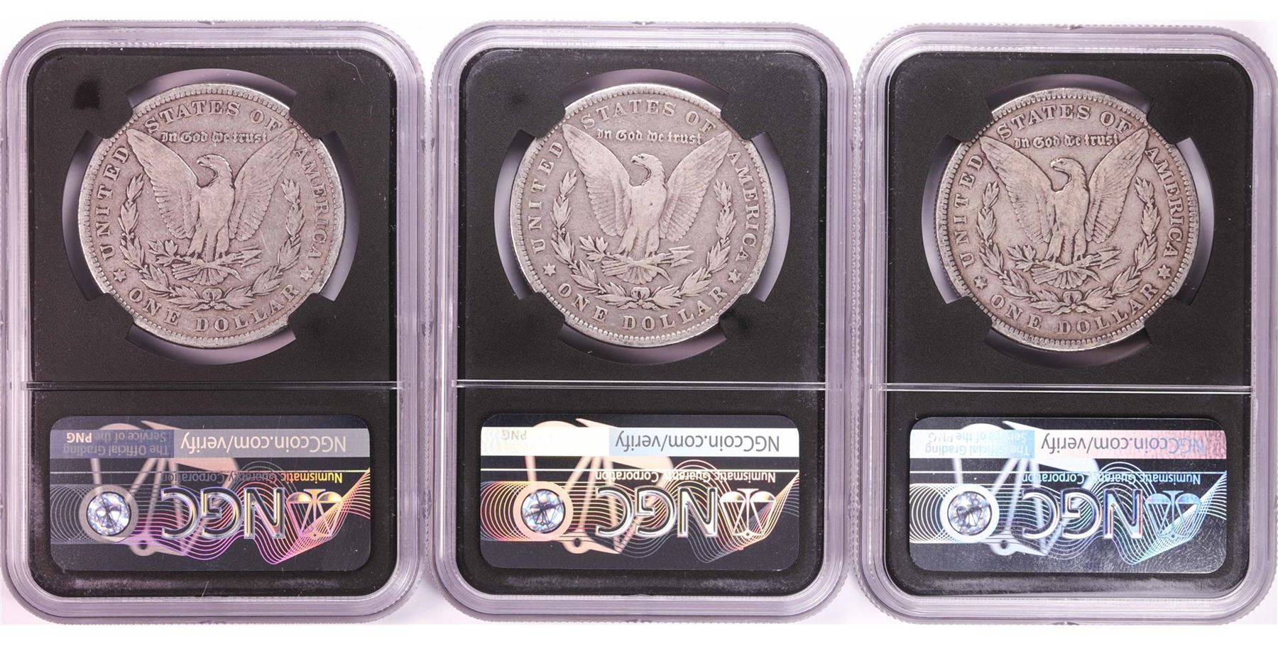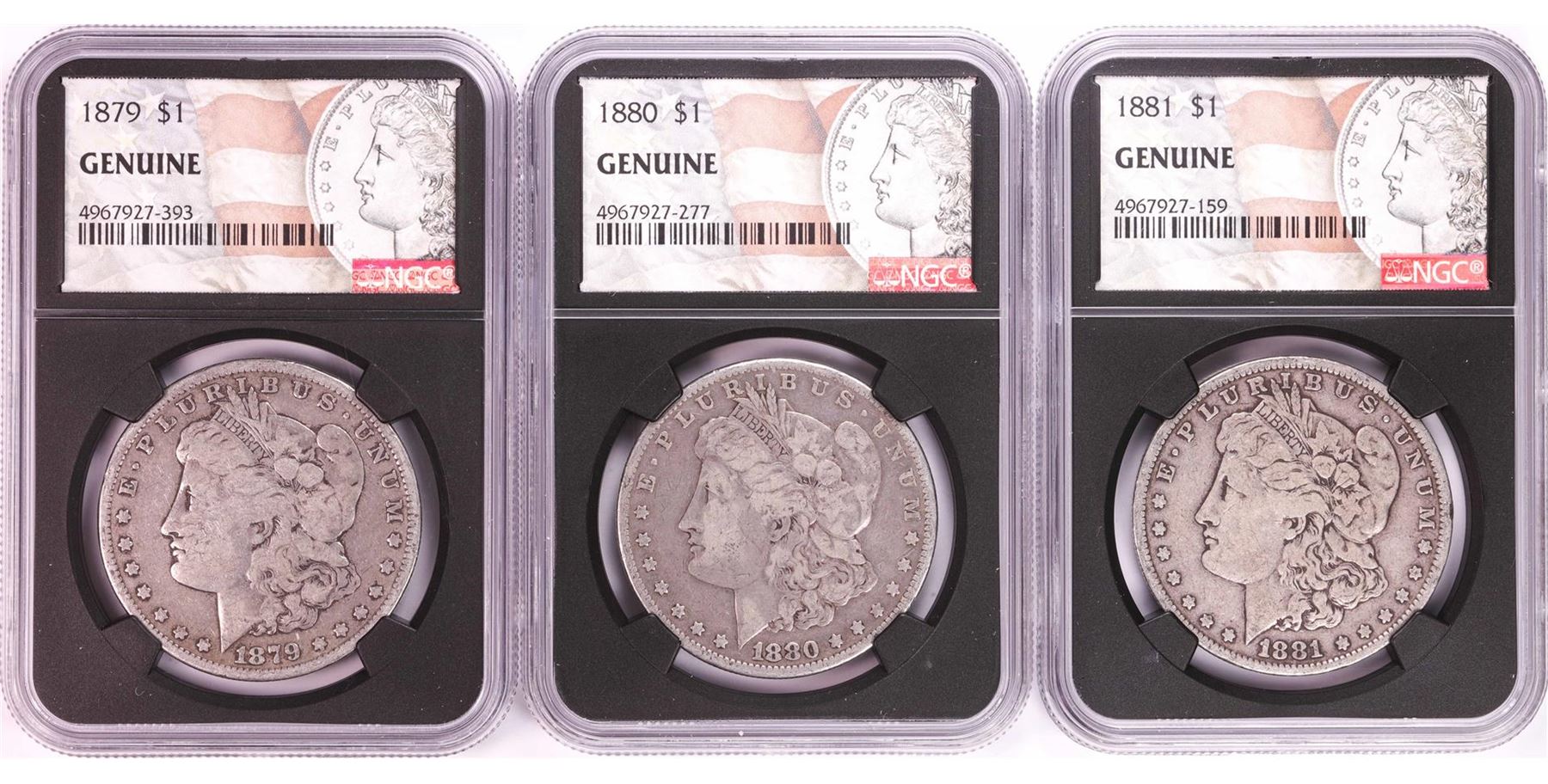 One Lot of 1879-1881 $1 Morgan Silver Dollar Coins NGC Genuine. NGC Certified.