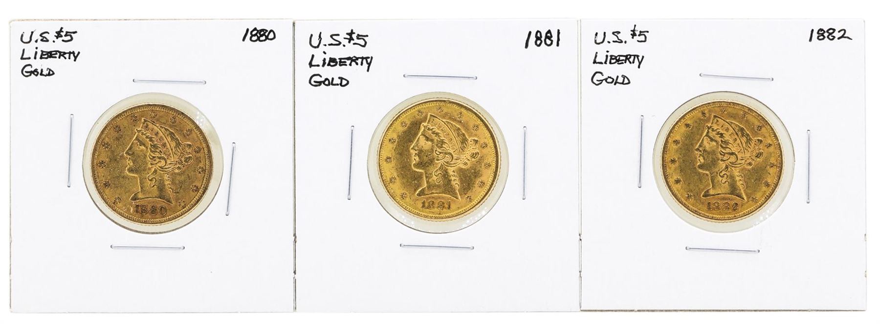 One Lot of 1880-1882 $5 Liberty Head Half Eagle Gold Coins.
