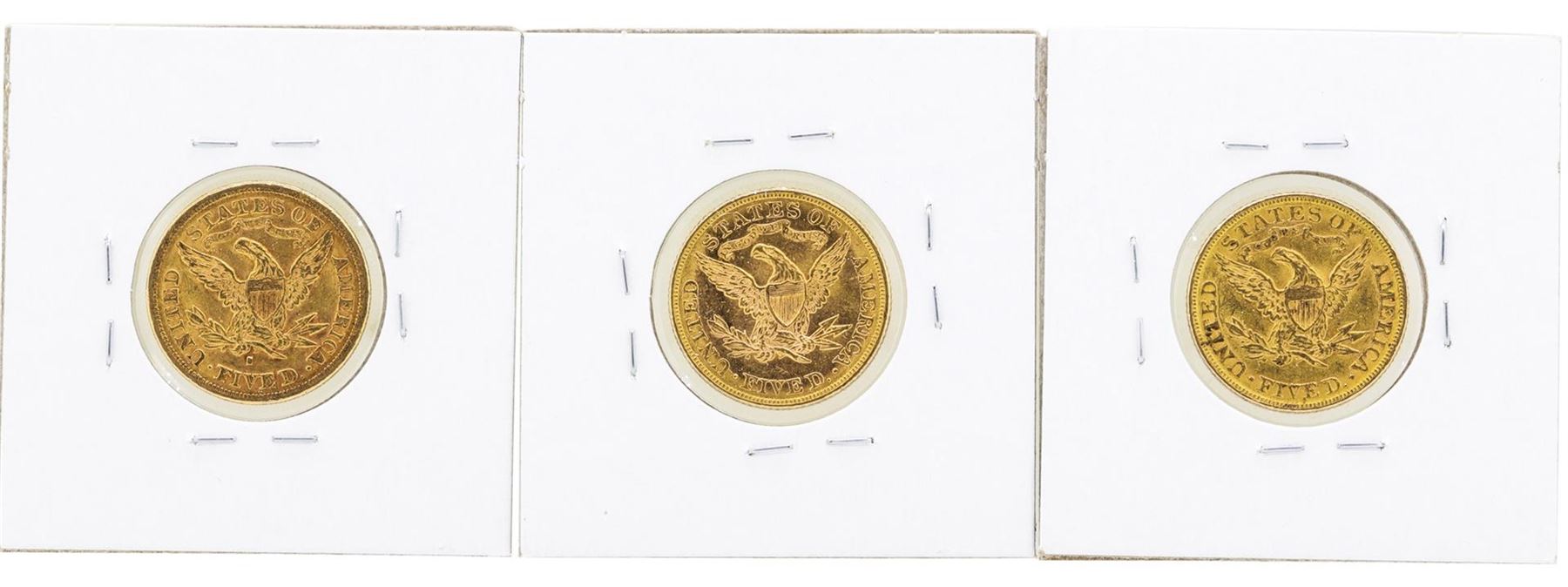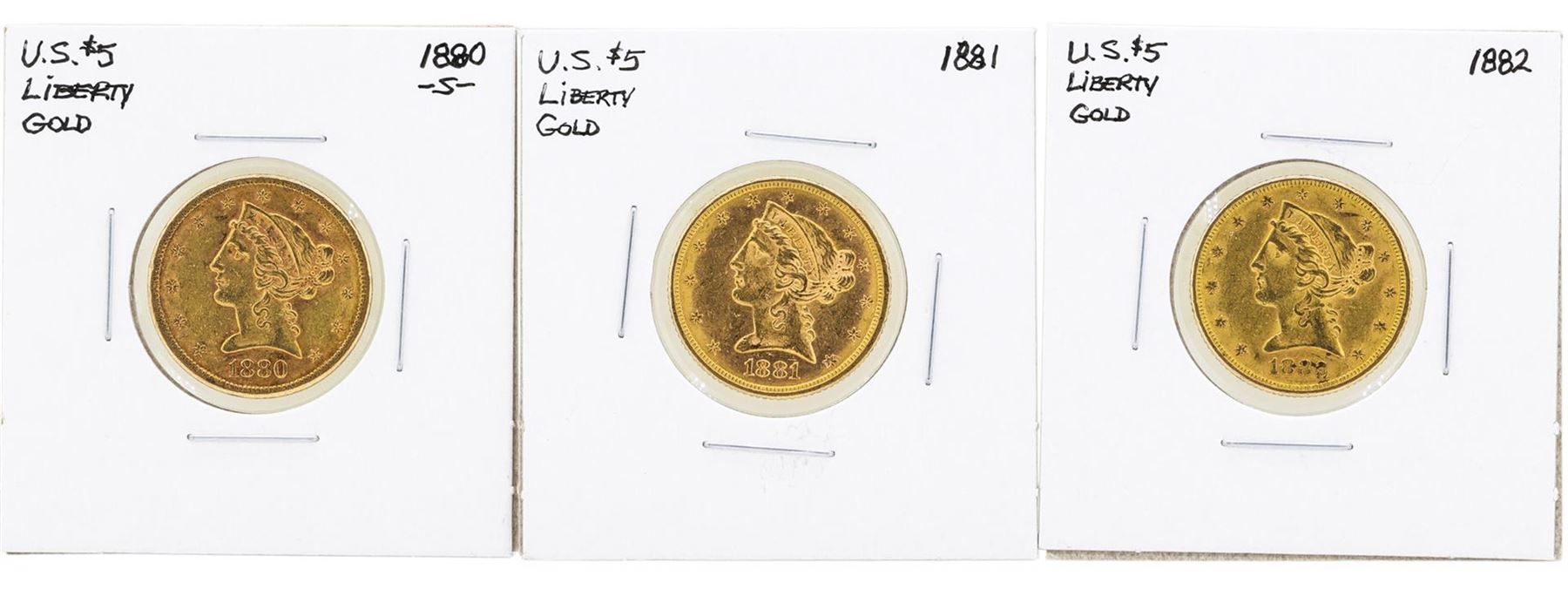 One Lot of 1880-1882 $5 Liberty Head Half Eagle Gold Coins.
