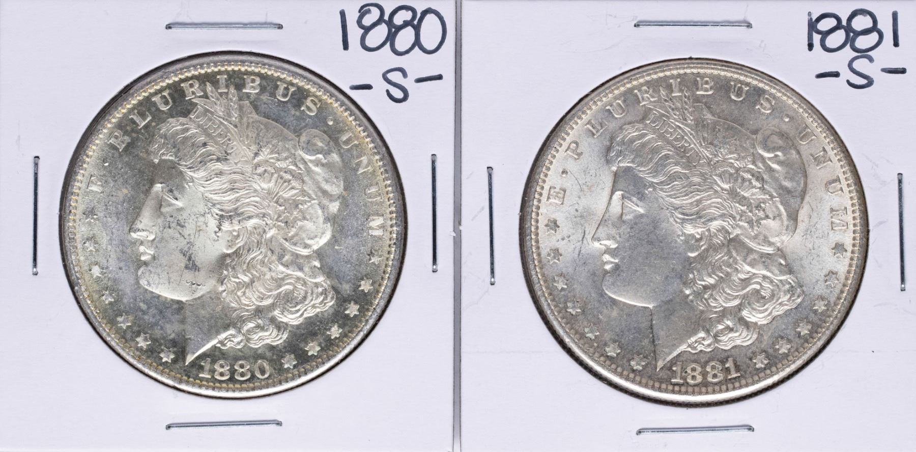 One Lot of 1880-S & 1881-S $1 Morgan Silver Dollar Coins.