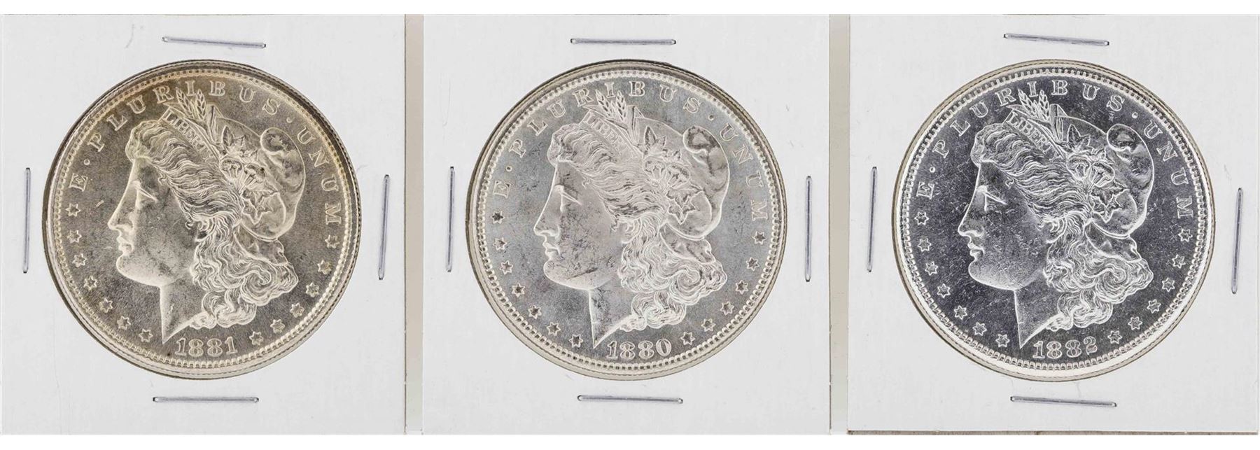 One Lot of 1880-S to 1882-S $1 Morgan Silver Dollar Coins.