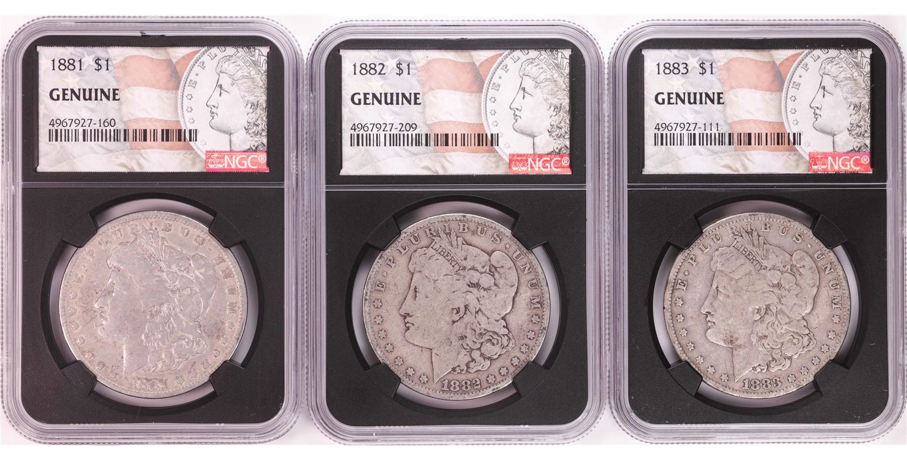 One Lot of 1881-1883 $1 Morgan Silver Dollar Coins NGC Genuine. NGC Certified.