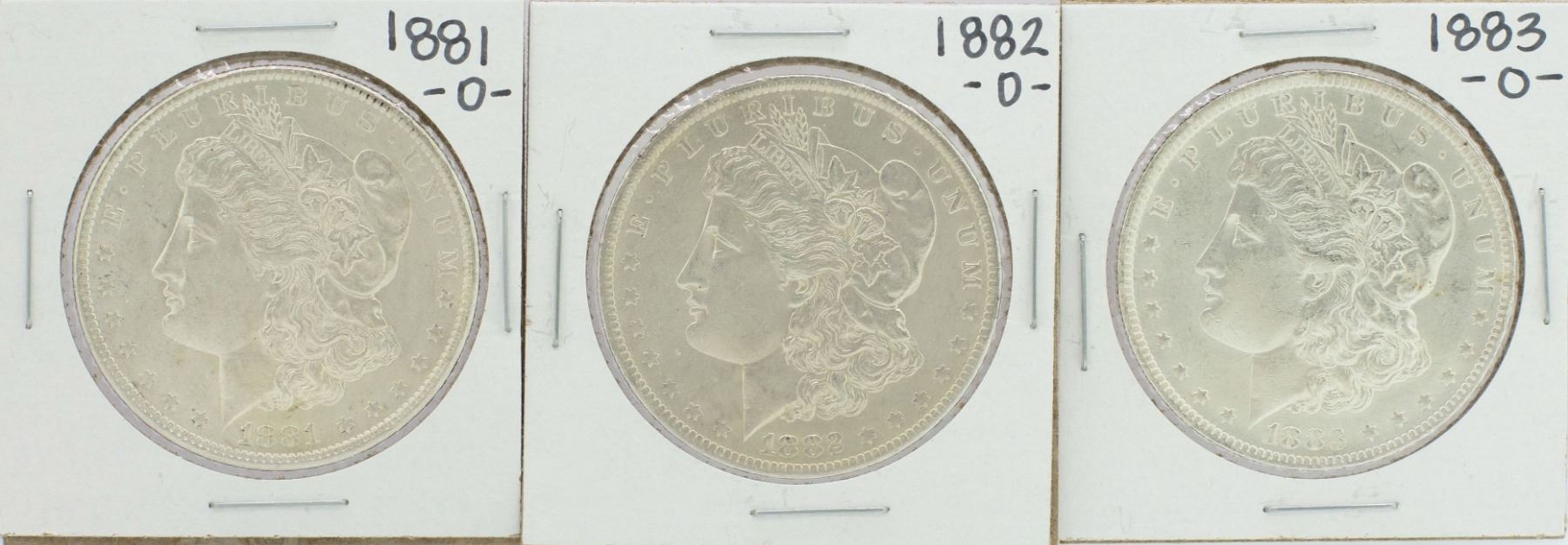 One Lot of 1881-O to 1883-O $1 Morgan Silver Dollar Coins.