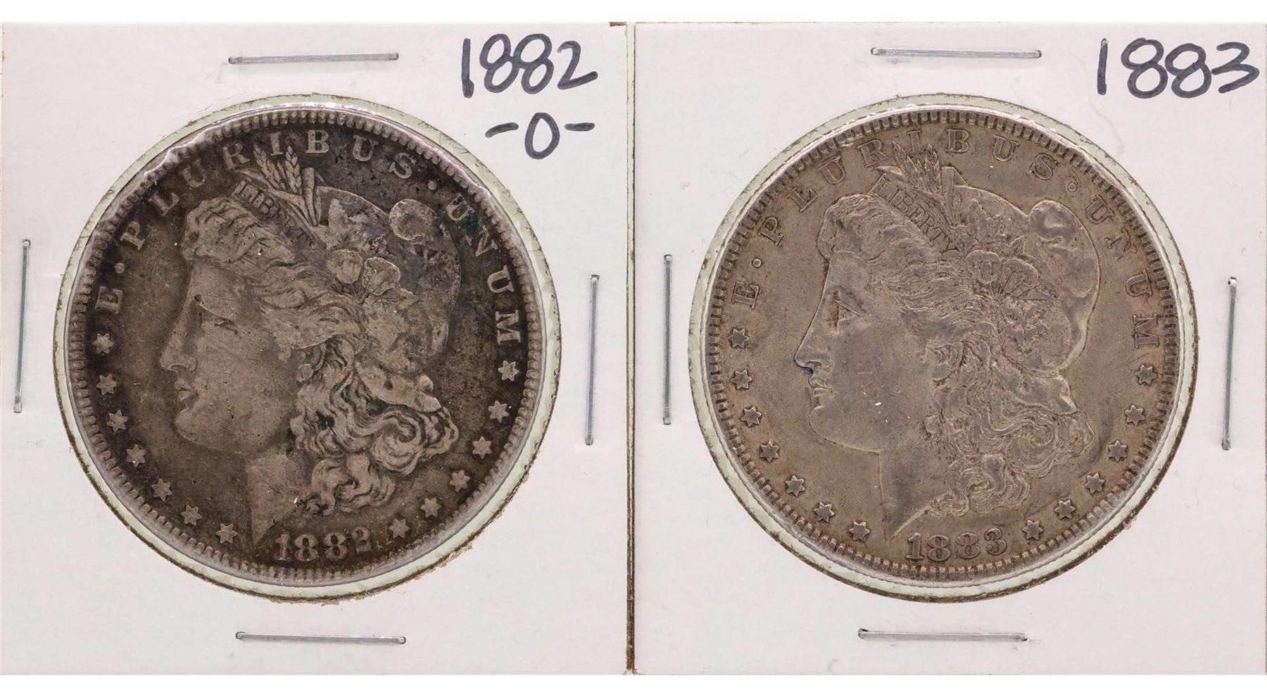 One Lot of 1882-O & 1883 $1 Morgan Silver Dollar Coins.