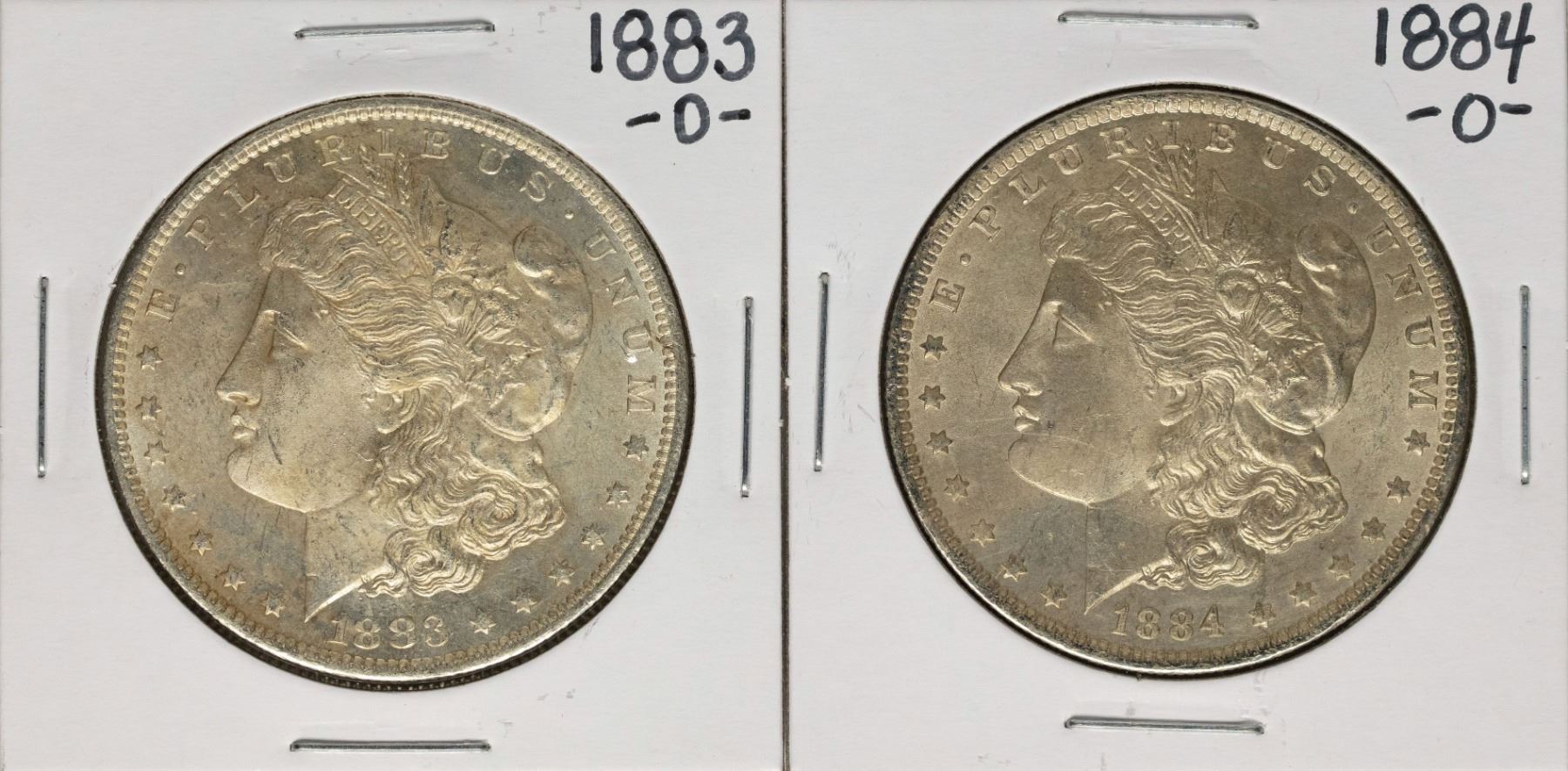 One Lot of 1883-O & 1884-O $1 Morgan Silver Dollar Coins.