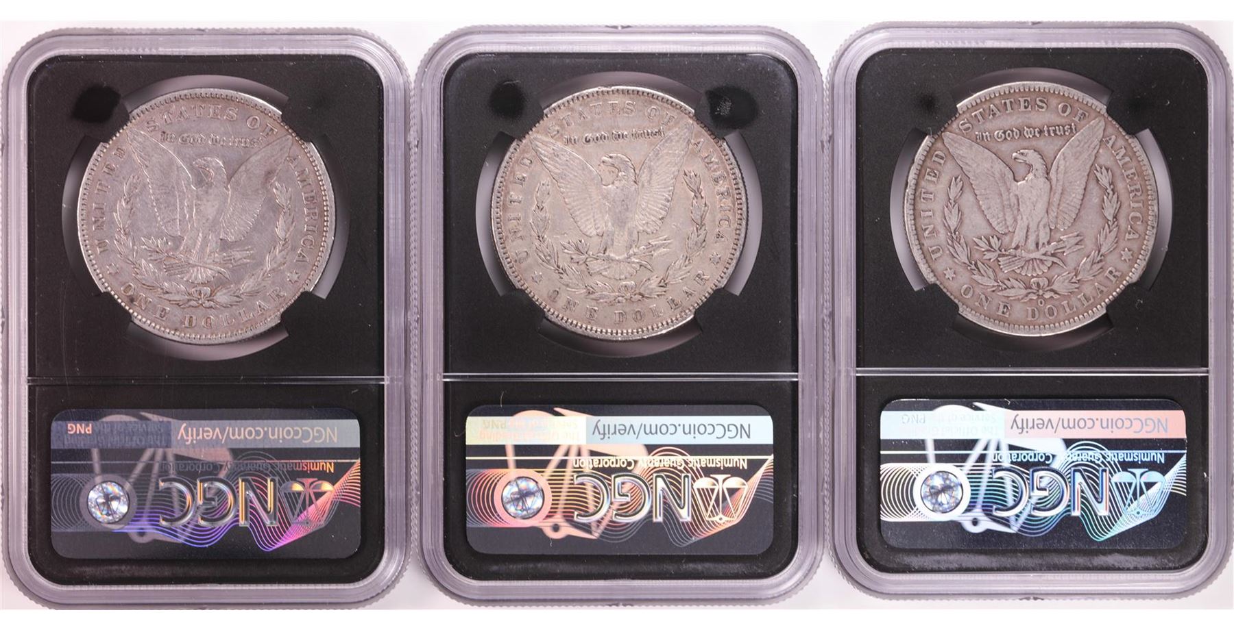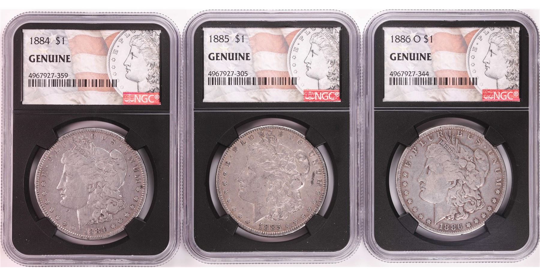 Lot of 1884, 1885, & 1886-O $1 Morgan Silver Dollar Coins NGC Genuine