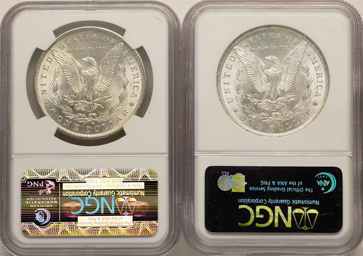 One Lot of 1884-O & 1885-O $1 Morgan Silver Dollar Coins NGC MS63. NGC Certified.