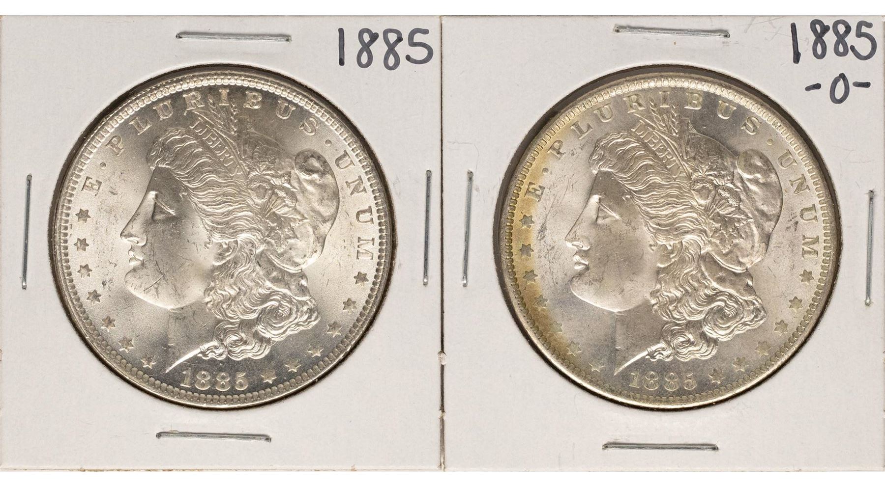 One Lot of 1885 & 1885-O $1 Morgan Silver Dollar Coins.