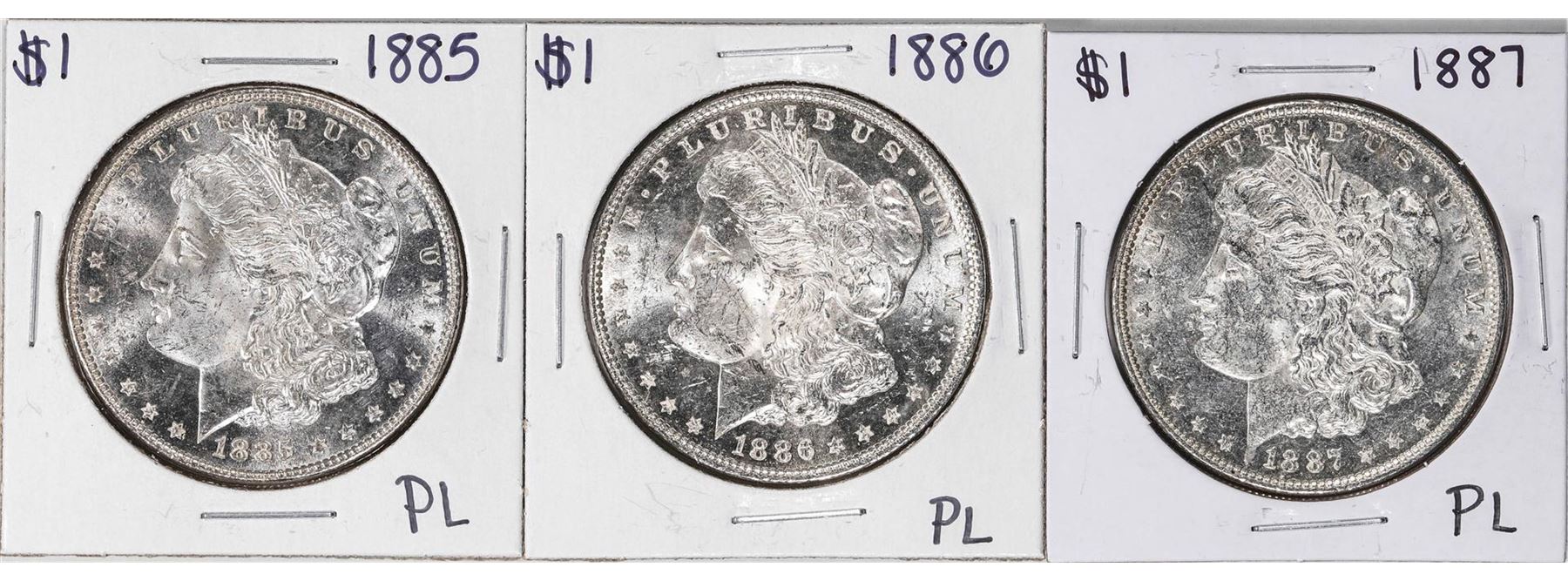One Lot of 1885-1887 $1 Morgan Silver Dollar Coins Proof Like.