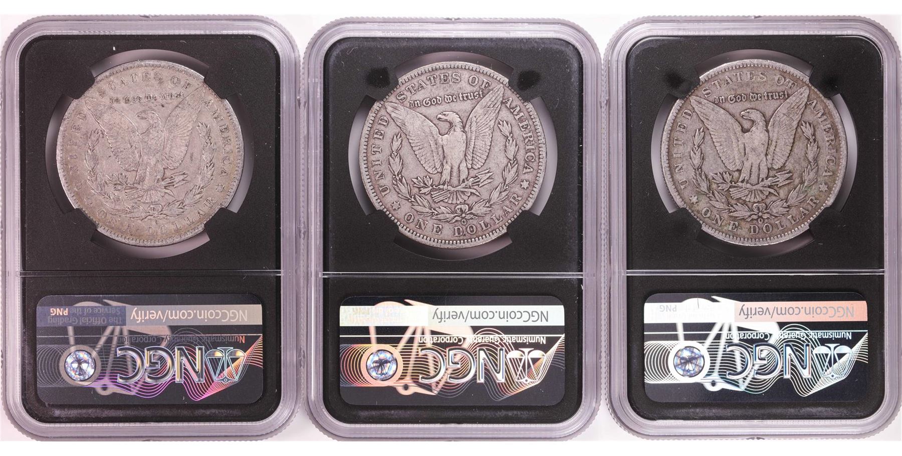One Lot of 1888-O to 1890-O $1 Morgan Silver Dollar Coins NGC Genuine. NGC Certified.