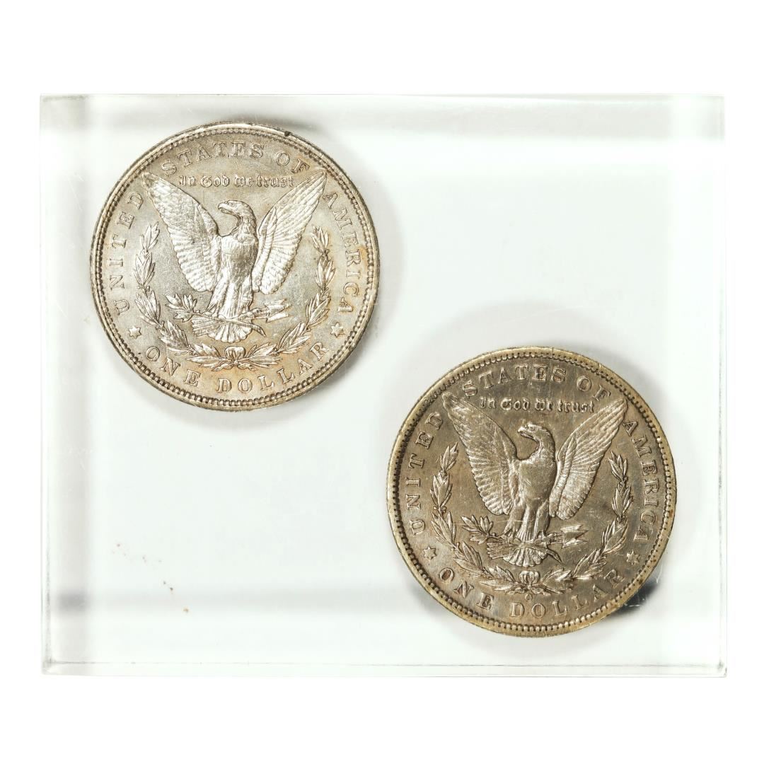 One Lot of 1890 & 1890-O $1 Morgan Silver Dollar Coins Encased in Lucite.