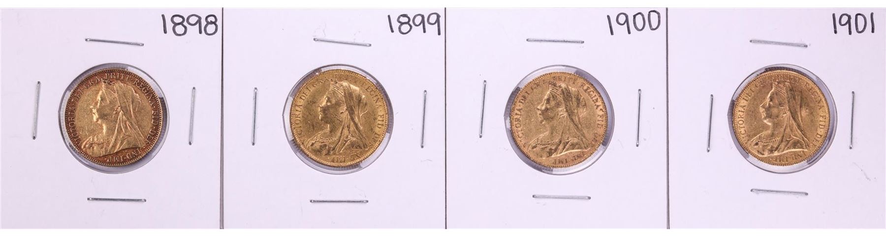 One Lot of 1898-1901 Great Britain Sovereign Gold Coins.