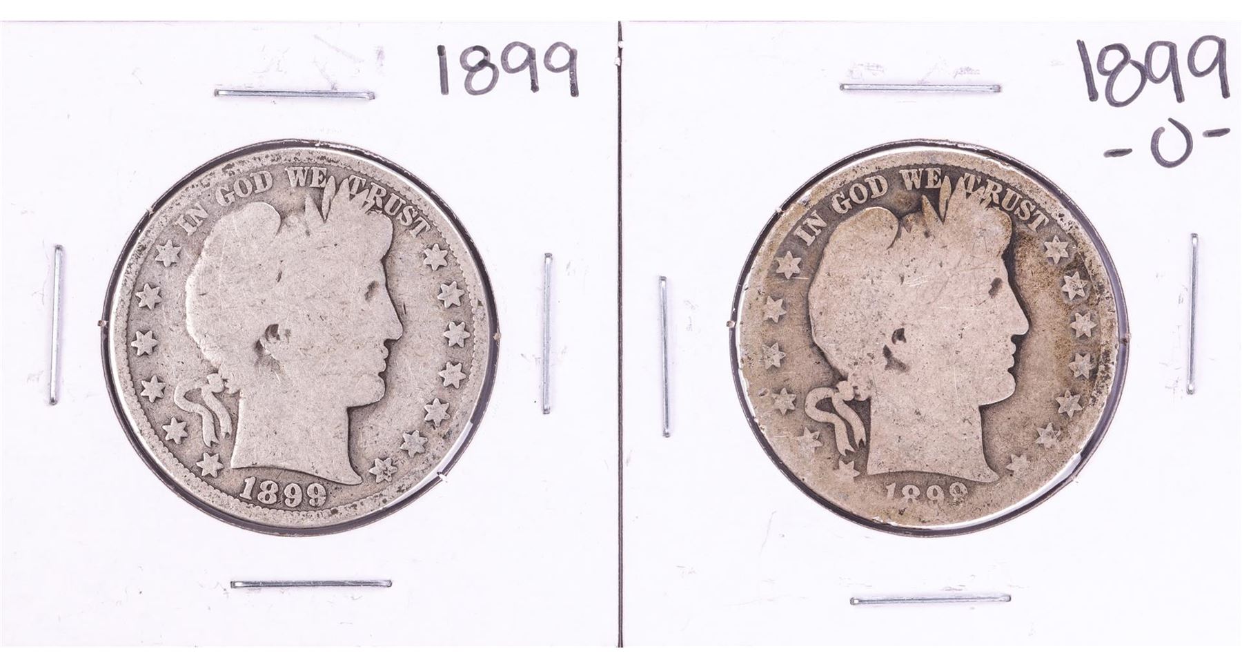 One Lot of 1899 & 1899-O Barber Half Dollar Coins.
