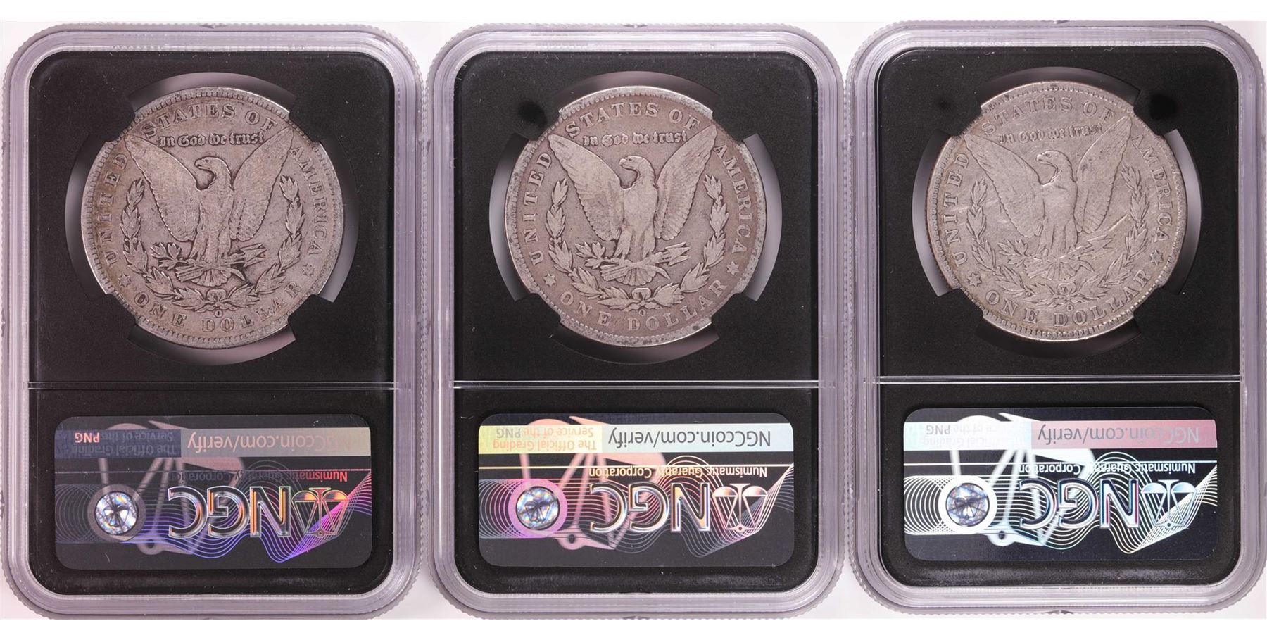 One Lot of 1899-O to 1901-O $1 Morgan Silver Dollar Coins NGC Genuine. NGC Certified.