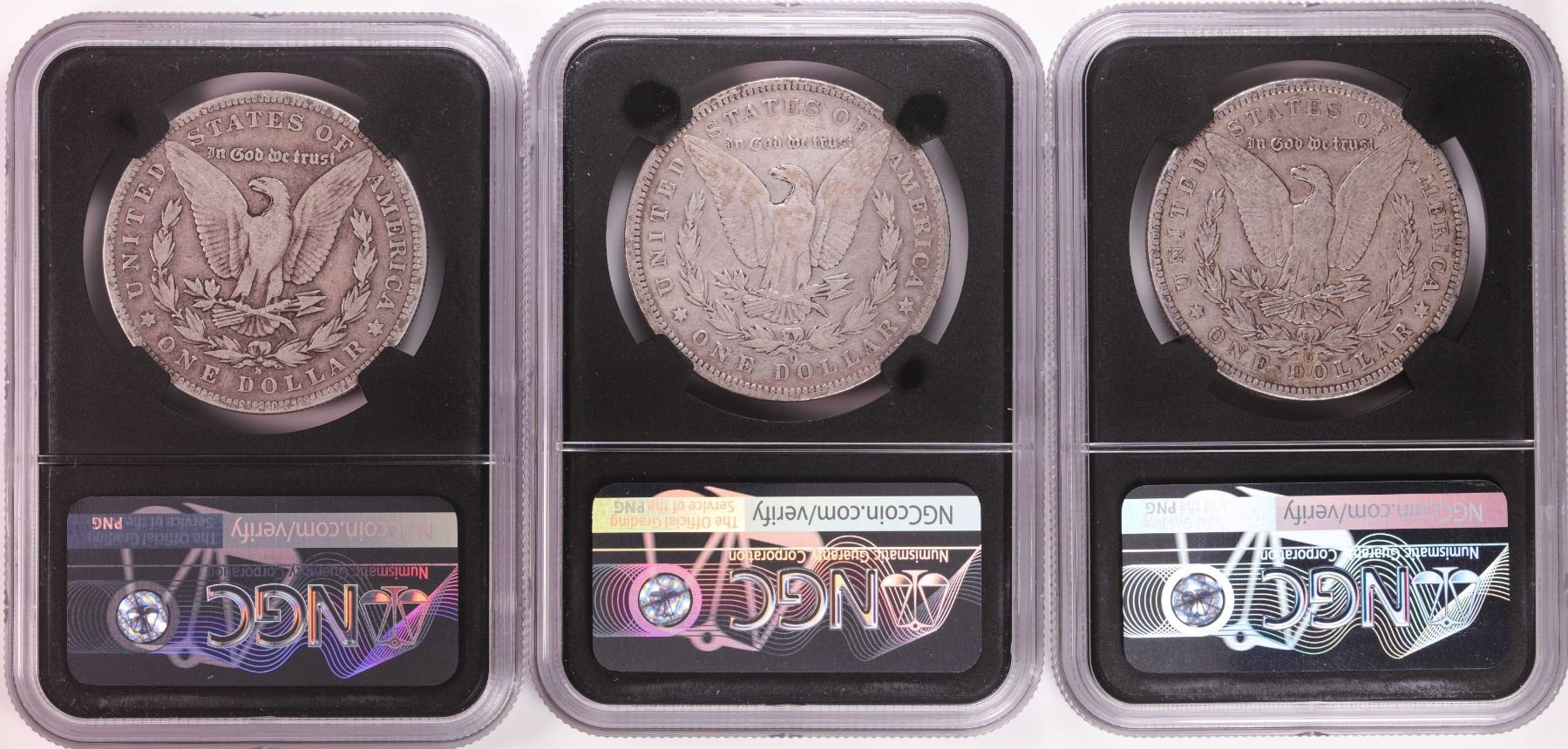 Lot of 1899-S, 1900-O, & 1901-O $1 Morgan Silver Dollar Coins NGC Genuine