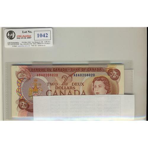 Lot of 19 "RADAR" notes. BC-47ai 1974 $2 Lawson-Bouey, all DIFFERENT PREFIX notes. Includes ABA02080