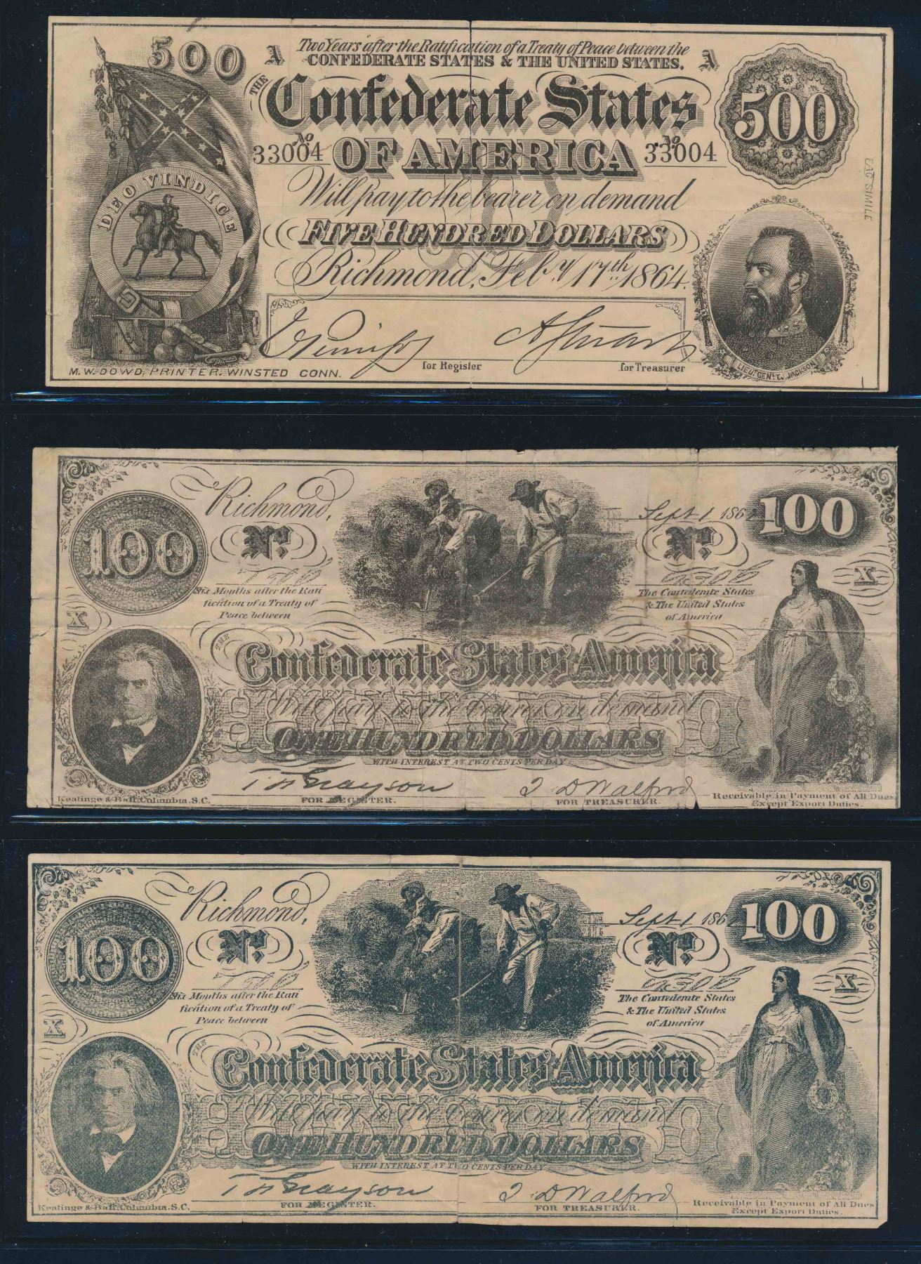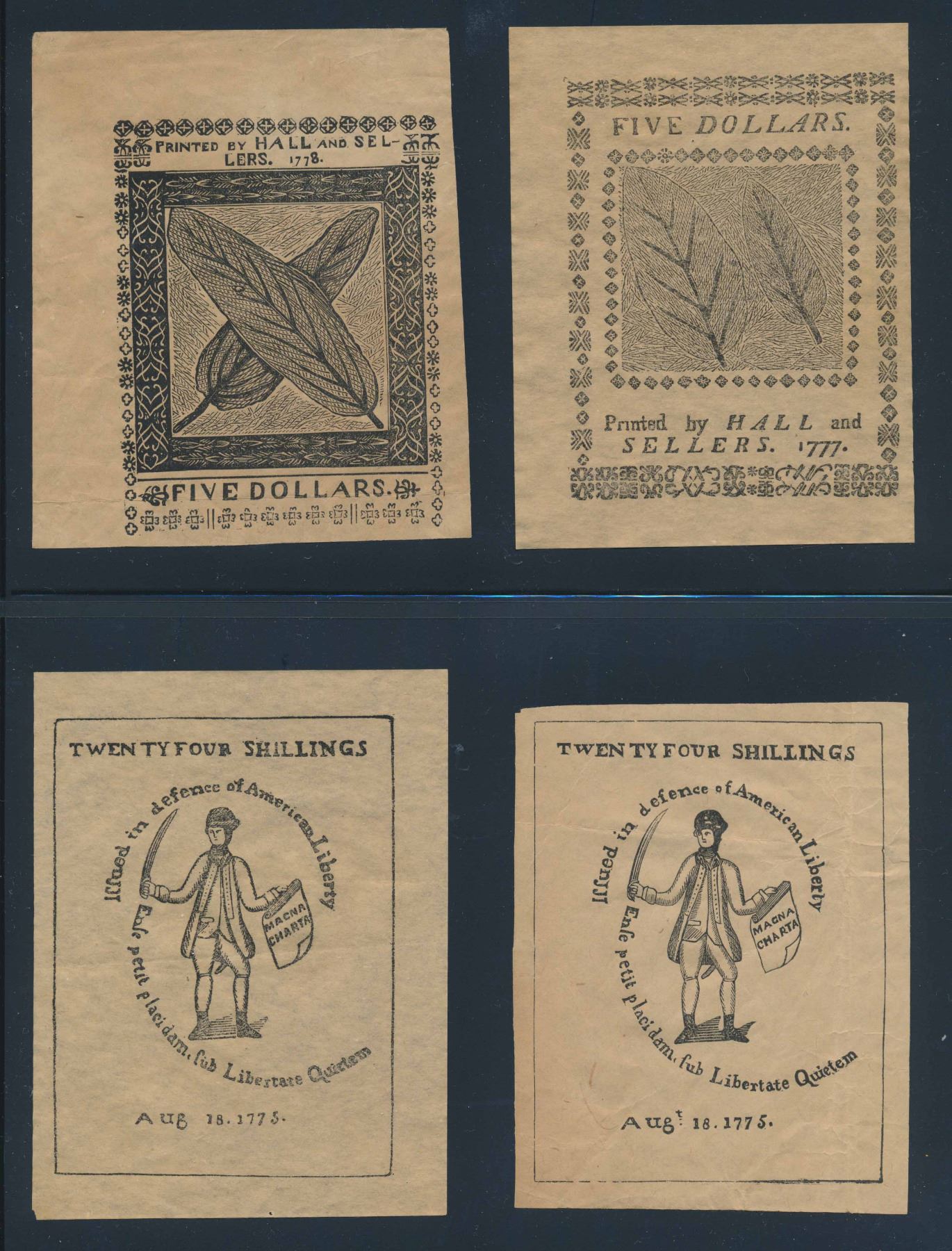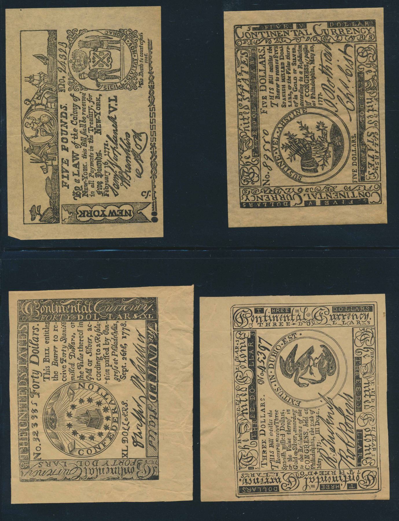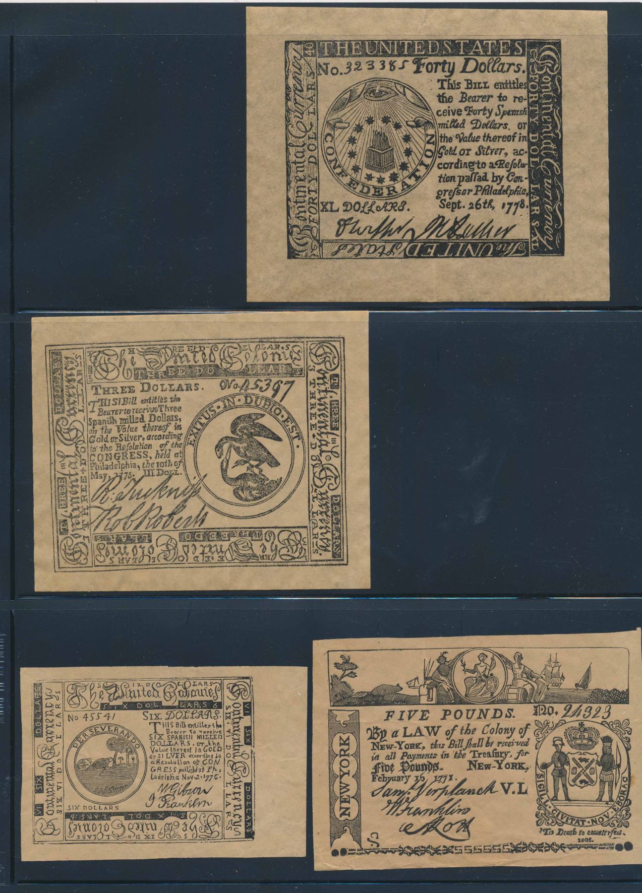 Lot of 16 old Uniface replicas of Continental Currency notes, + 3 Replica Confederate notes