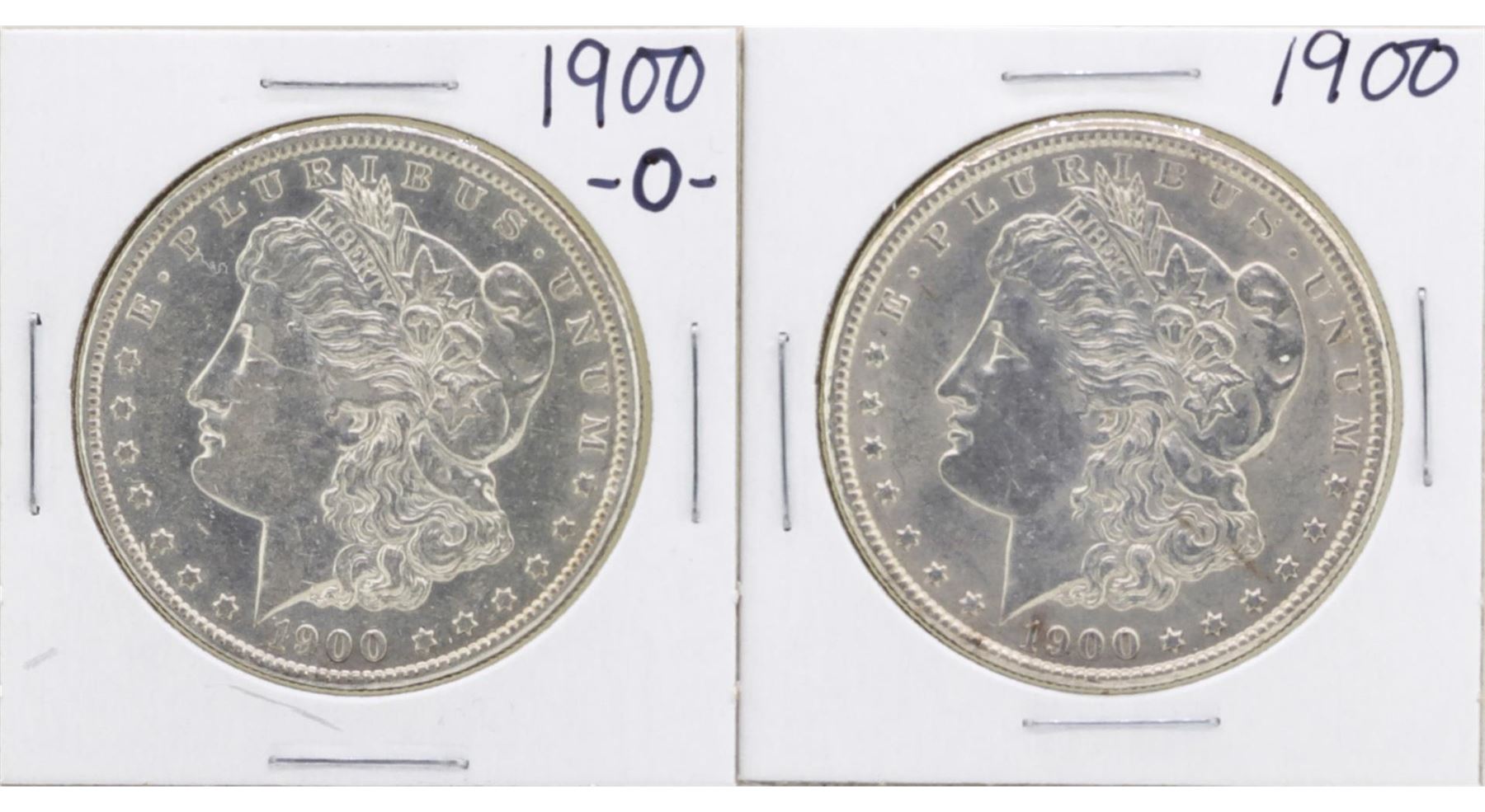 One Lot of 1900 & 1900-O $1 Morgan Silver Dollar Coins.