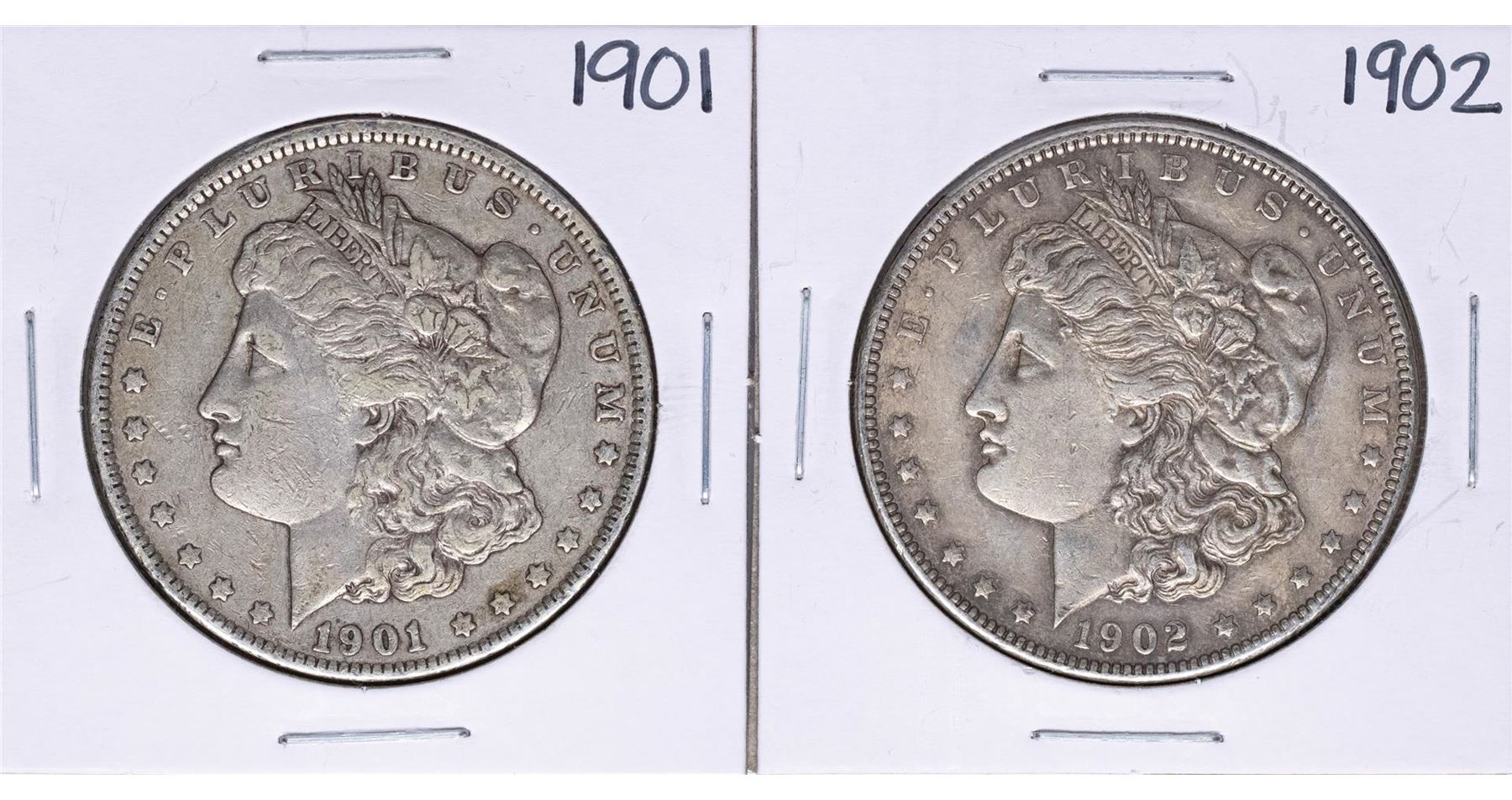 One Lot of 1901-1902 $1 Morgan Silver Dollar Coins.