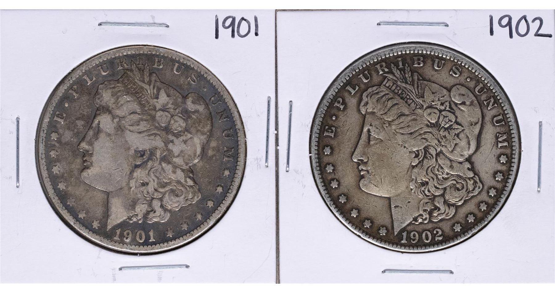 One Lot of 1901-1902 $1 Morgan Silver Dollar Coins.