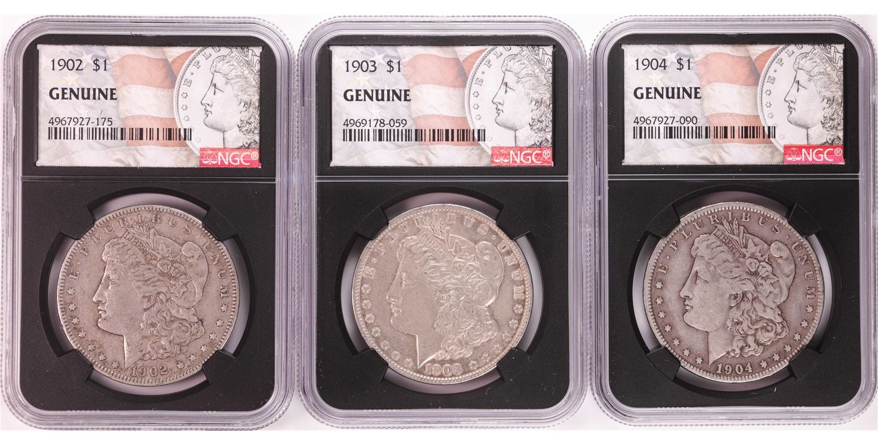 One Lot of 1902-1904 $1 Morgan Silver Dollar Coins NGC Genuine. NGC Certified.