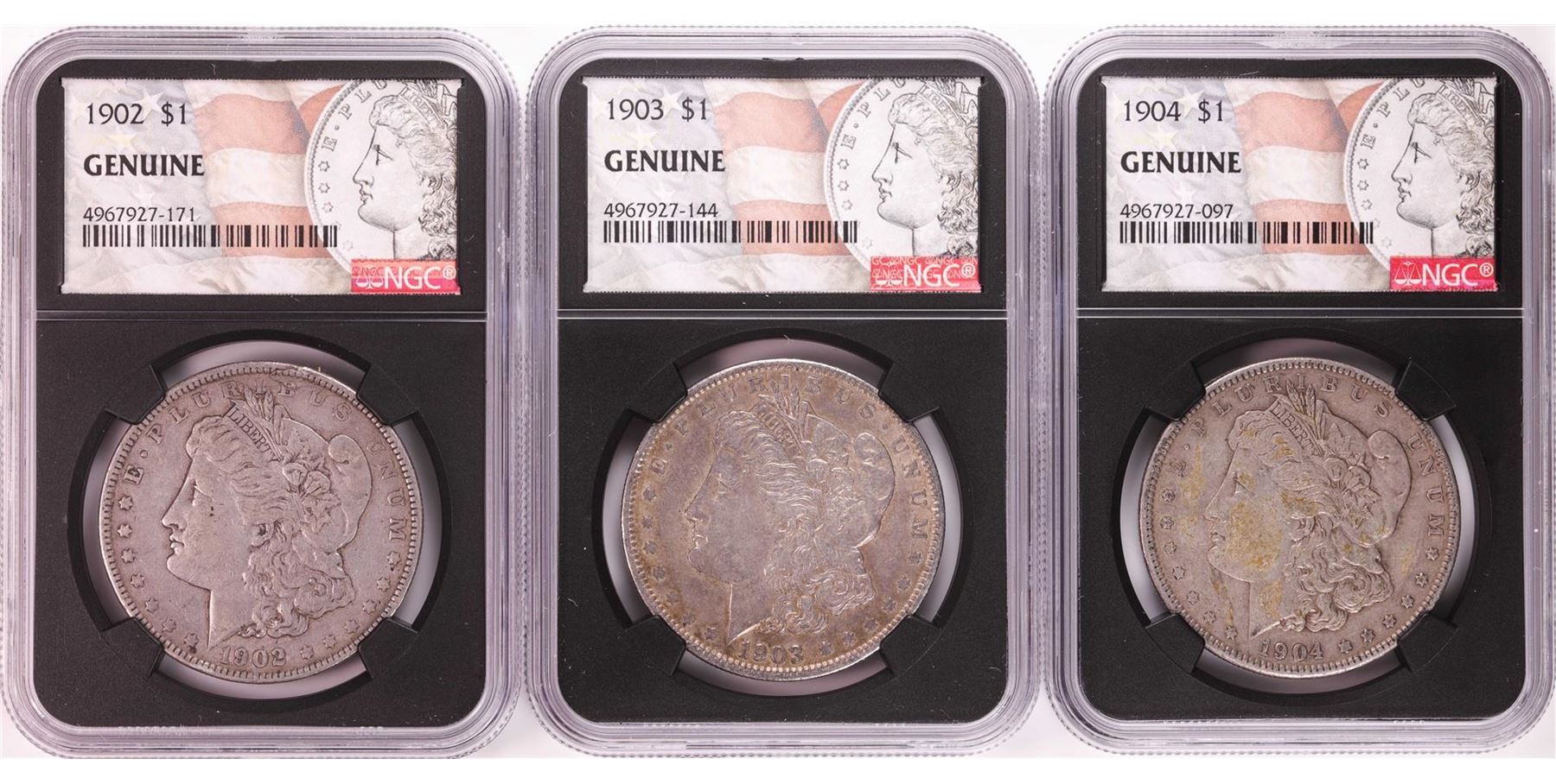 One Lot of 1902-1904 $1 Morgan Silver Dollar Coins NGC Genuine. NGC Certified.