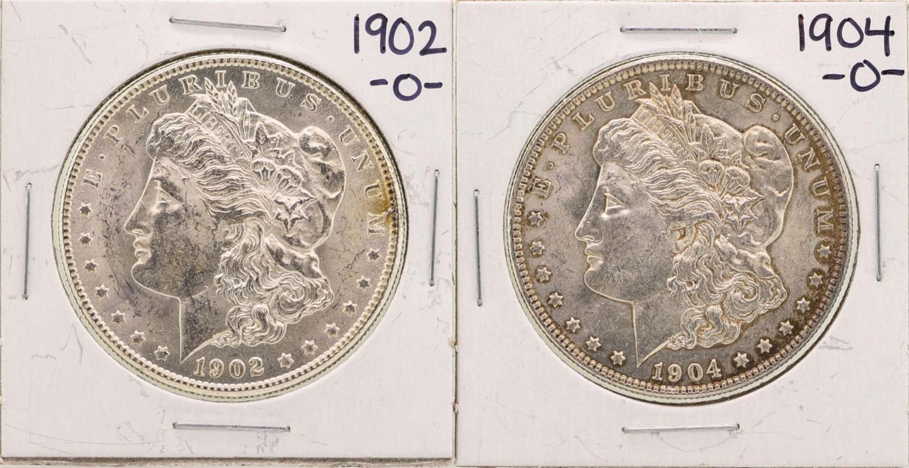 One Lot of 1902-O & 1904-O $1 Morgan Silver Dollar Coins.