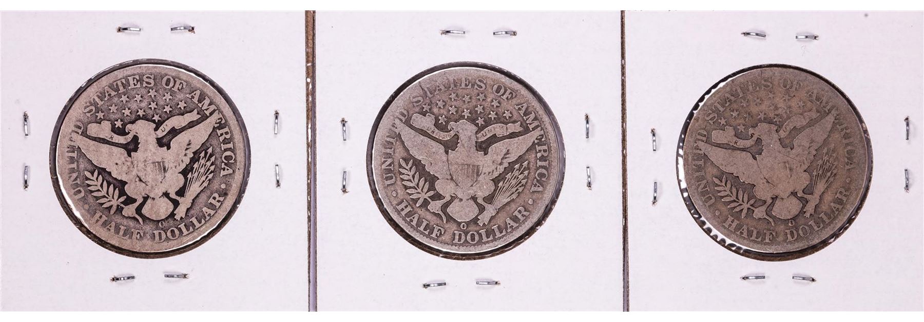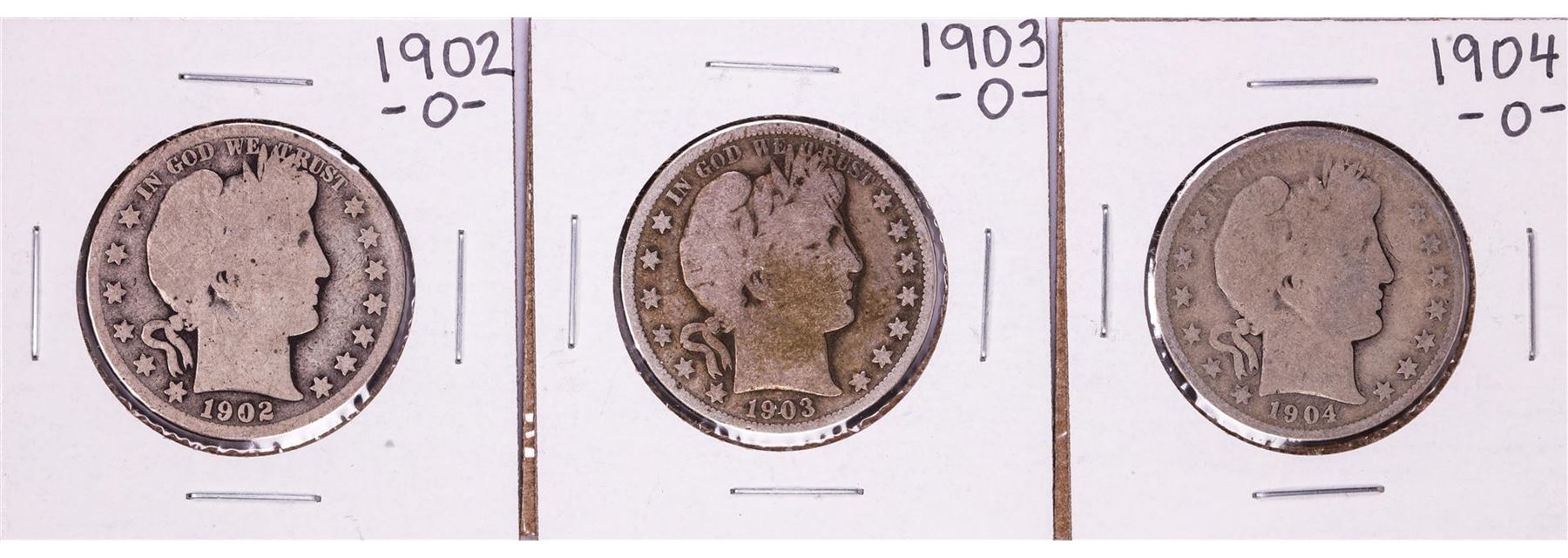 One Lot of 1902-O to 1904-O Barber Half Dollar Coins.
